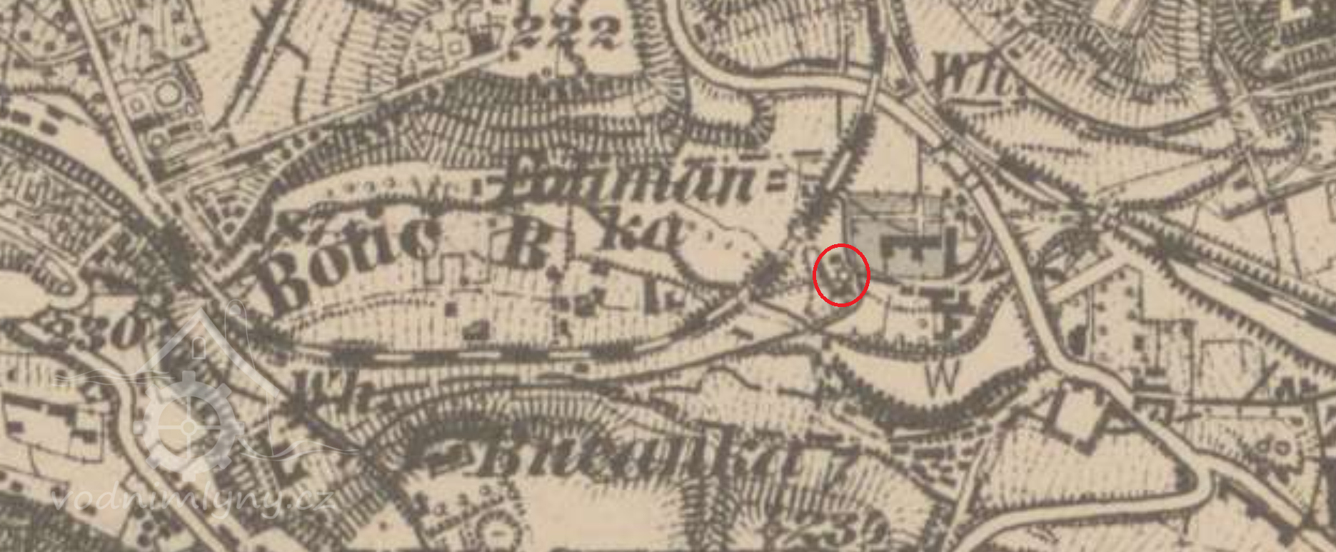 Mlýn stál v polovině 19. století nedaleko usedlosti Folimanka.