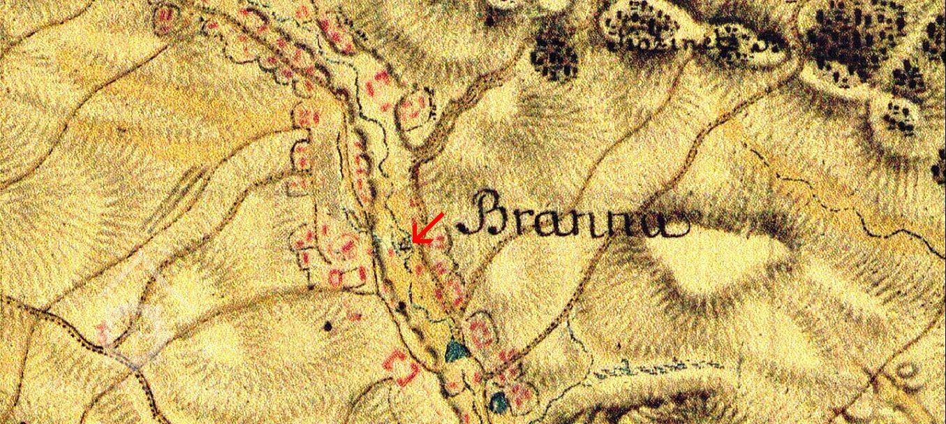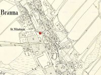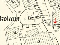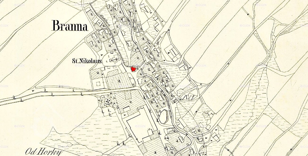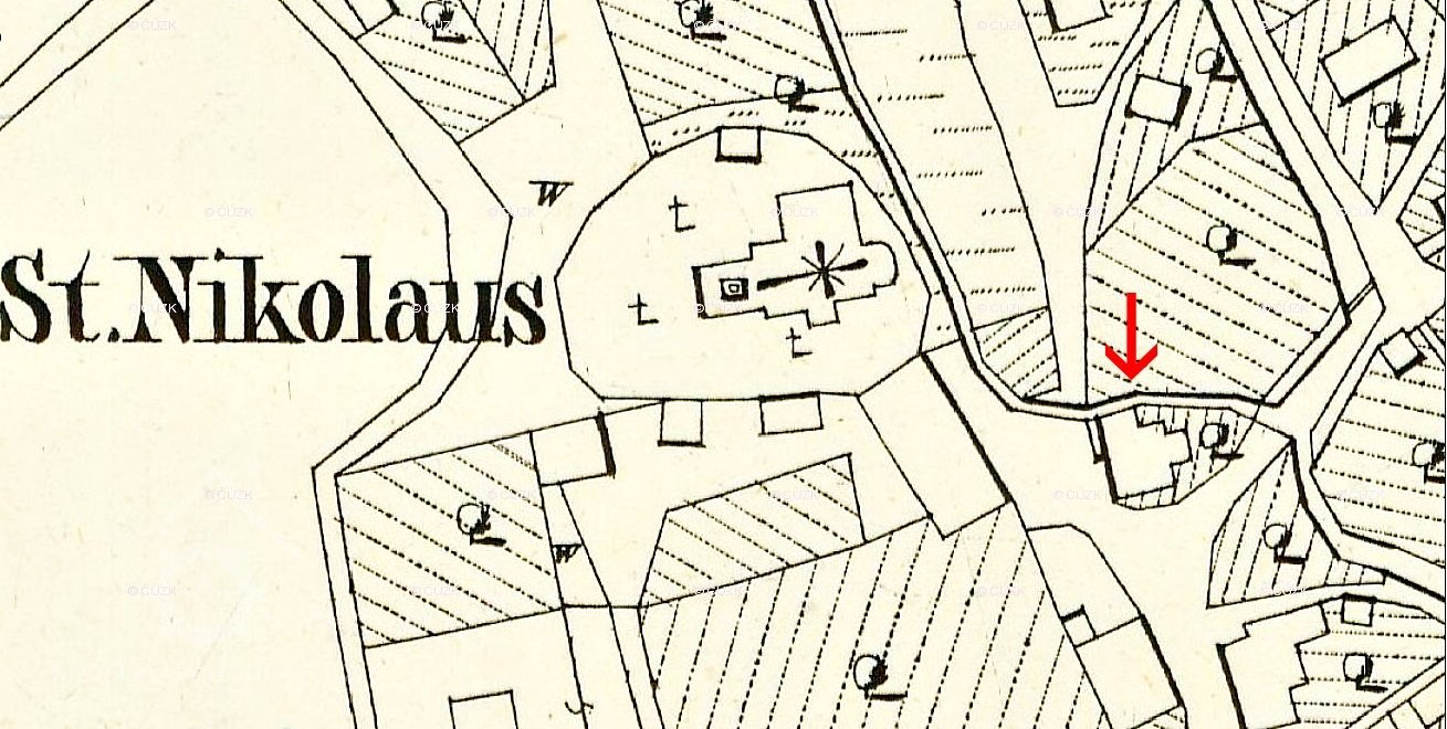 Mlýn se nacházel asi 80 m jihovýchodně pod kostelem sv. Mikuláše.