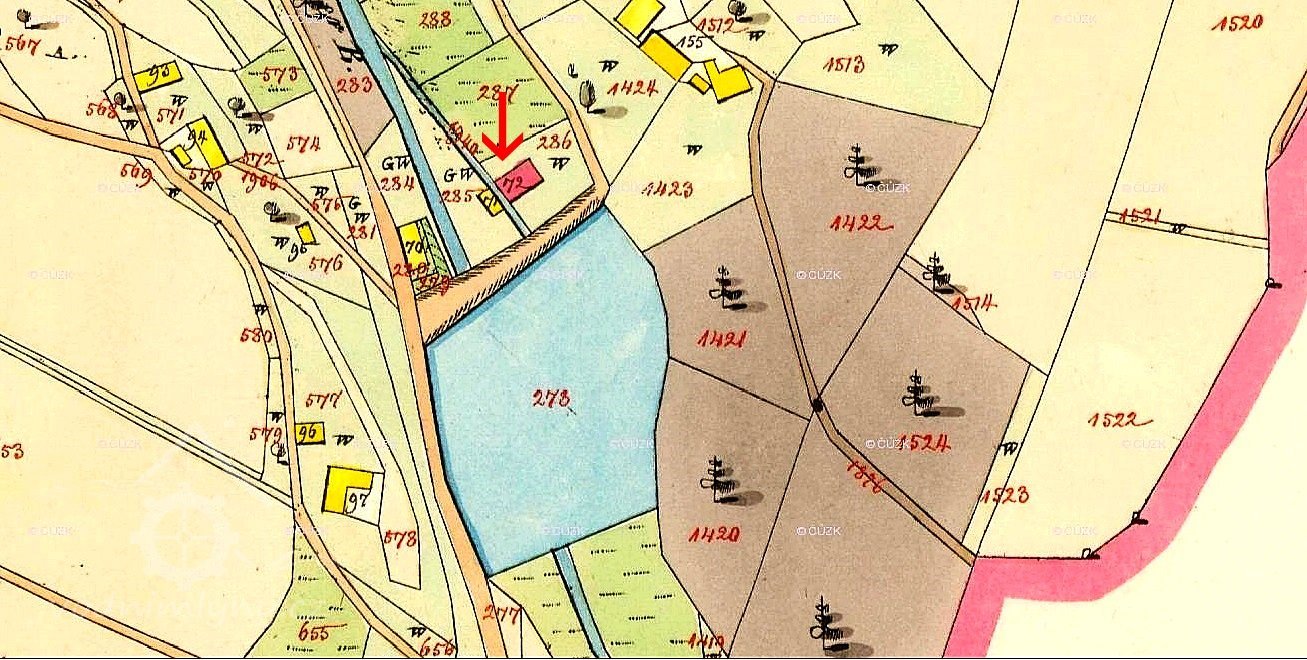 Mlýn se nacházel na severním okraji zastavěného intravilánu obce.