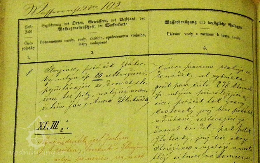 Popis1930: 1 turbína Francis, hltnost 0,3 m3/s, spád 5,15 m, výkon 19,6 HP