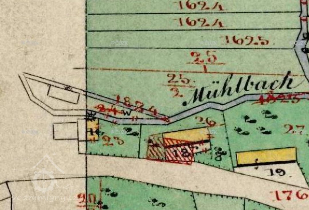 Popis1930: 1 kolo na svrchní vodu, hltnost 0,2 m3/s, spád 5 m, výkon 8,64 HP