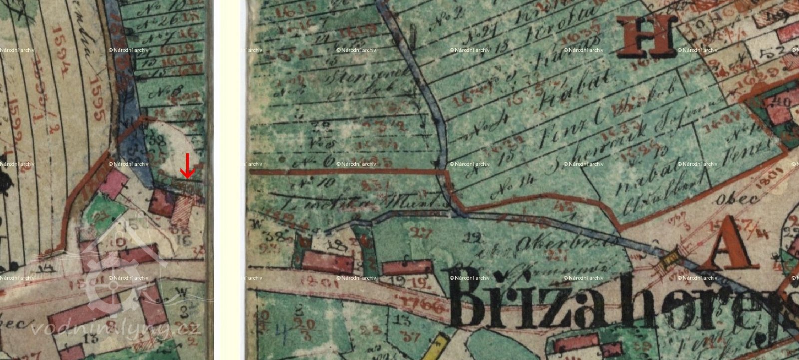 1654 Berní rula: majitel Václav Linarc, jest zkaženej do konce, u mlýna 1/2 lánu pozemků