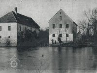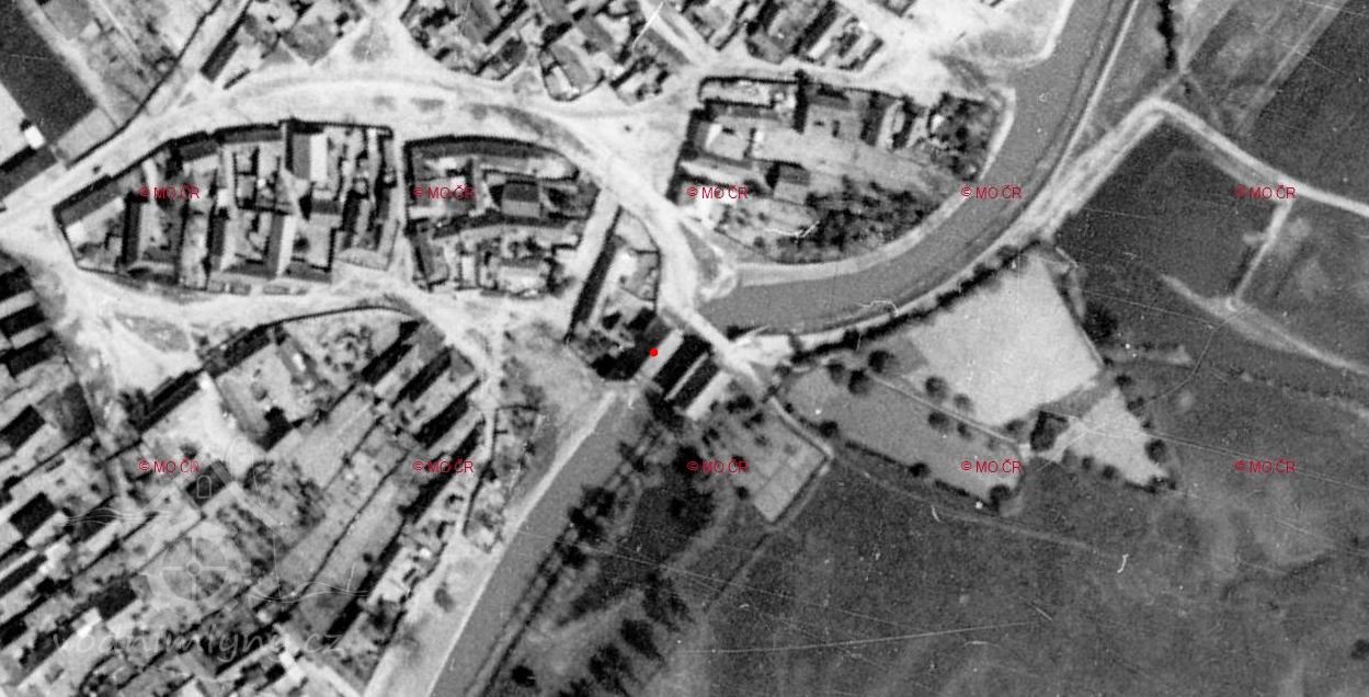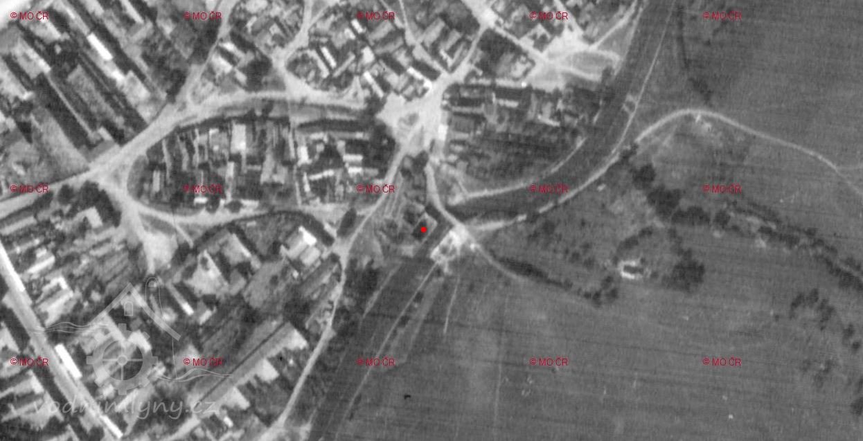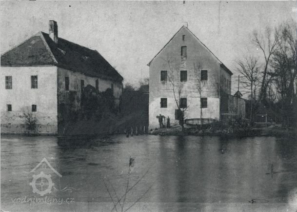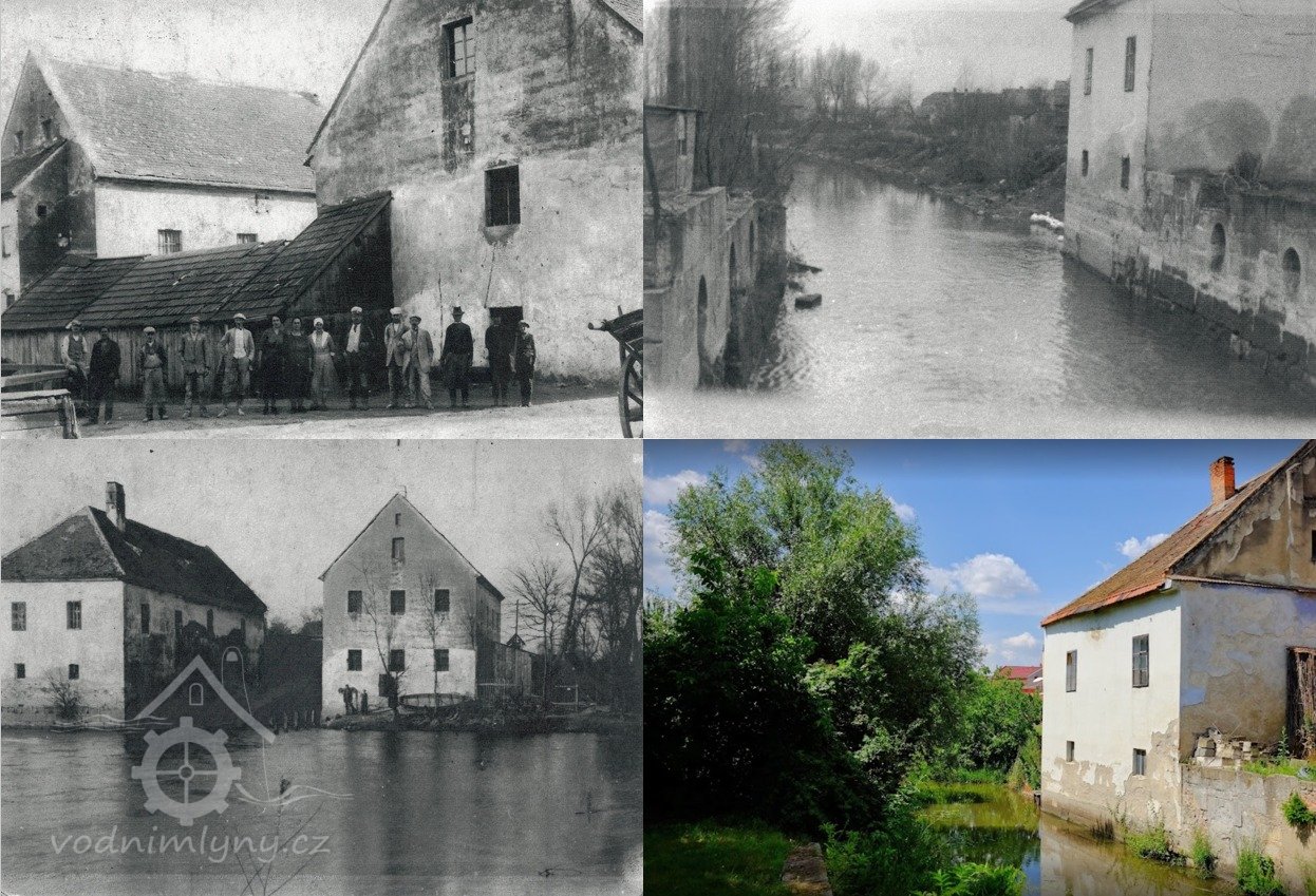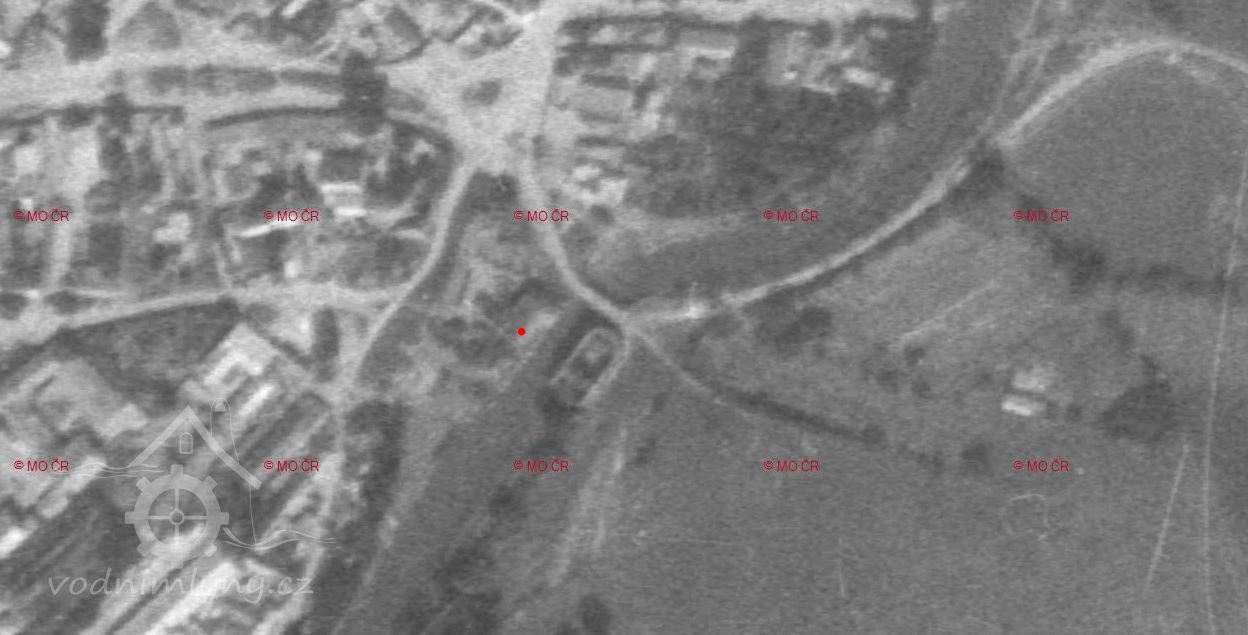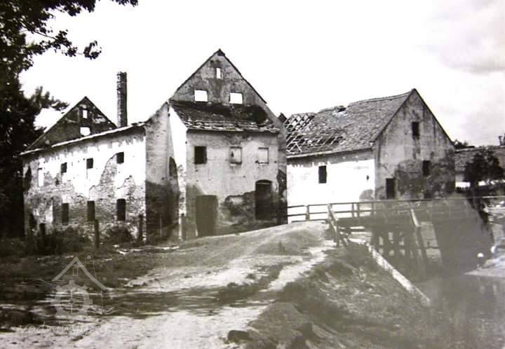V roce 1938 stály ještě obě části mlýna, v roce 1949 je novější jižní budova v rámci demolice bez střechy.