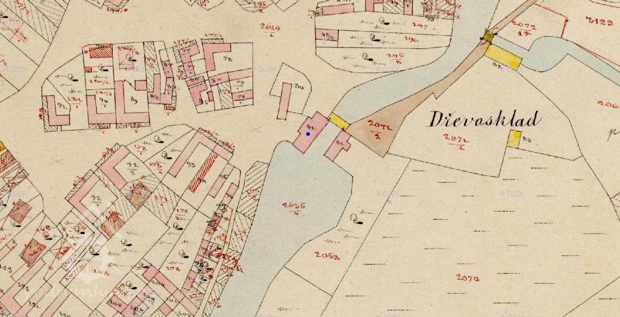 Vodní kola pracovala přímo na vodoteči Kyjovka.