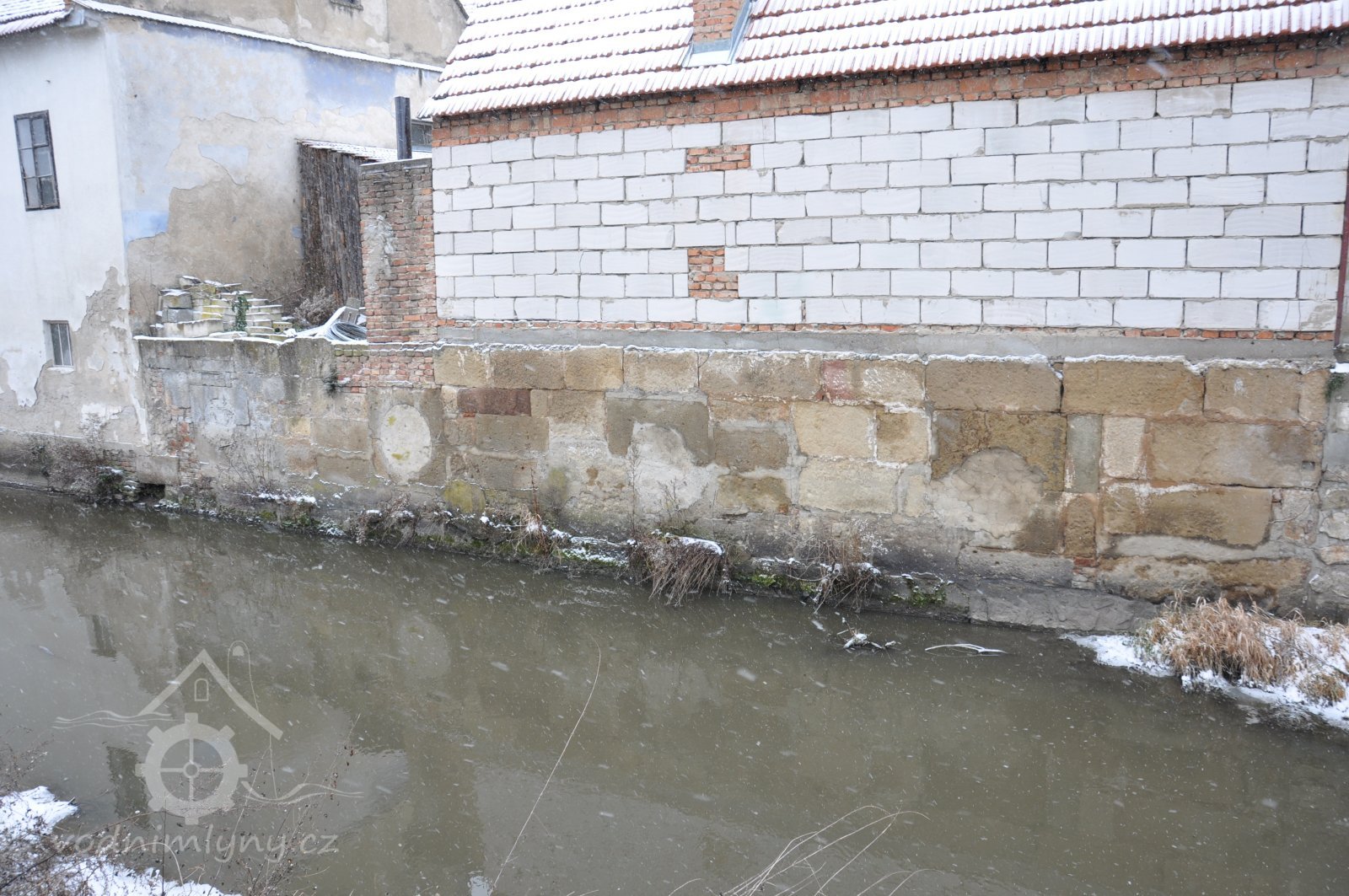 Na jednom z břehů (směrem k obci) stojí dochovaná obytná místnost s polovalbovou střechou. Hned za ní stála mlýnice, avšak byla zbourána někdy po roce 1950. Na Druhém břehu stála druhá mlýnice. Ta byla také zbourána v 50. letech.