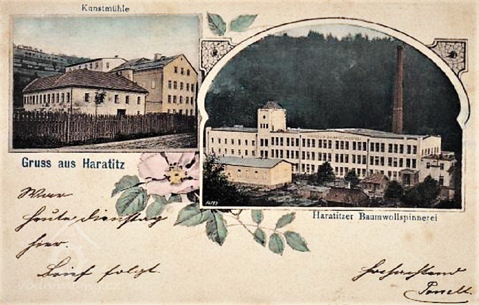 Jiřík Berka mlynář od Zásadky, 85 let starý v Zásadě u u Jan Šourka starýho rychtáře, že bývali rychtáři z Haratic - Balatka, Ducháček. Ale vlastní příčina jest - jako Palanků mlejn se jmenuje Machlovský, že před časy v něm býval mlynář, který se jmenoval Václav Machlovský, tak mlejn Václava Jůny se jmenuje mlejn Haratický, že až do roku 1658 před 113 lety na něm býval mlynář, který se jmenoval Václav Haratický. Při konci roku 1658 dostal se do toho mlejna Václav Rýdl ze vsi Haratic. Nebo roku 1658 dne 26. febr. mlynář Václav Haratický byl kmotrem Matějovi synu Václava Šourka Plavskýho. A toho roku 1658 dne 17. martii pokřtěn byl Adam z otce Václava Mlynářova Haratického, kmotr jeho byl Václav Rýdl. Pak roku 1659 dne 7. ledna Jan, syn mlynáře haratického Rydela, byl kmotrem Matějovi, synu Jana Petrušky ze vsi Haratic. A tak ten mlejn nejmenuje se Haratický od vsi Haratice ani od obce Haratické, jako od starobylého mlynáře, který se jmenoval Václav Haratický, jako od 19. prosince roku 1734 až do 12. apríle roku 1735 v Držkově byl páter Josef Haratický z Jičína rodilý, měl své jmého ne od vsi Haratice, ale od svého otce. A tím se Haratičtí mejlili.
