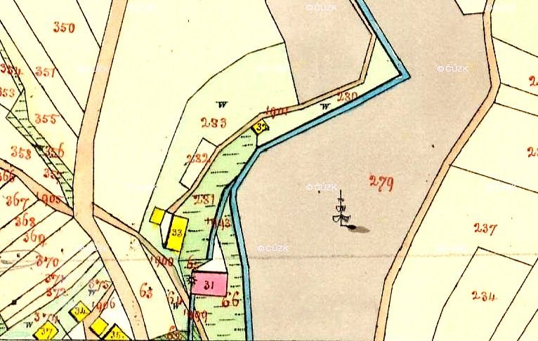 Popis1930: 1 kolo na svrchní vodu, hltnost 0,06 m3/s, spád 7,8 m, výkon 4,06 HP