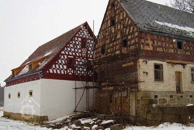 obnova hrázdění objektu bývalého mlýna, 2005, © Jaroslav Vyčichlo (ed.)