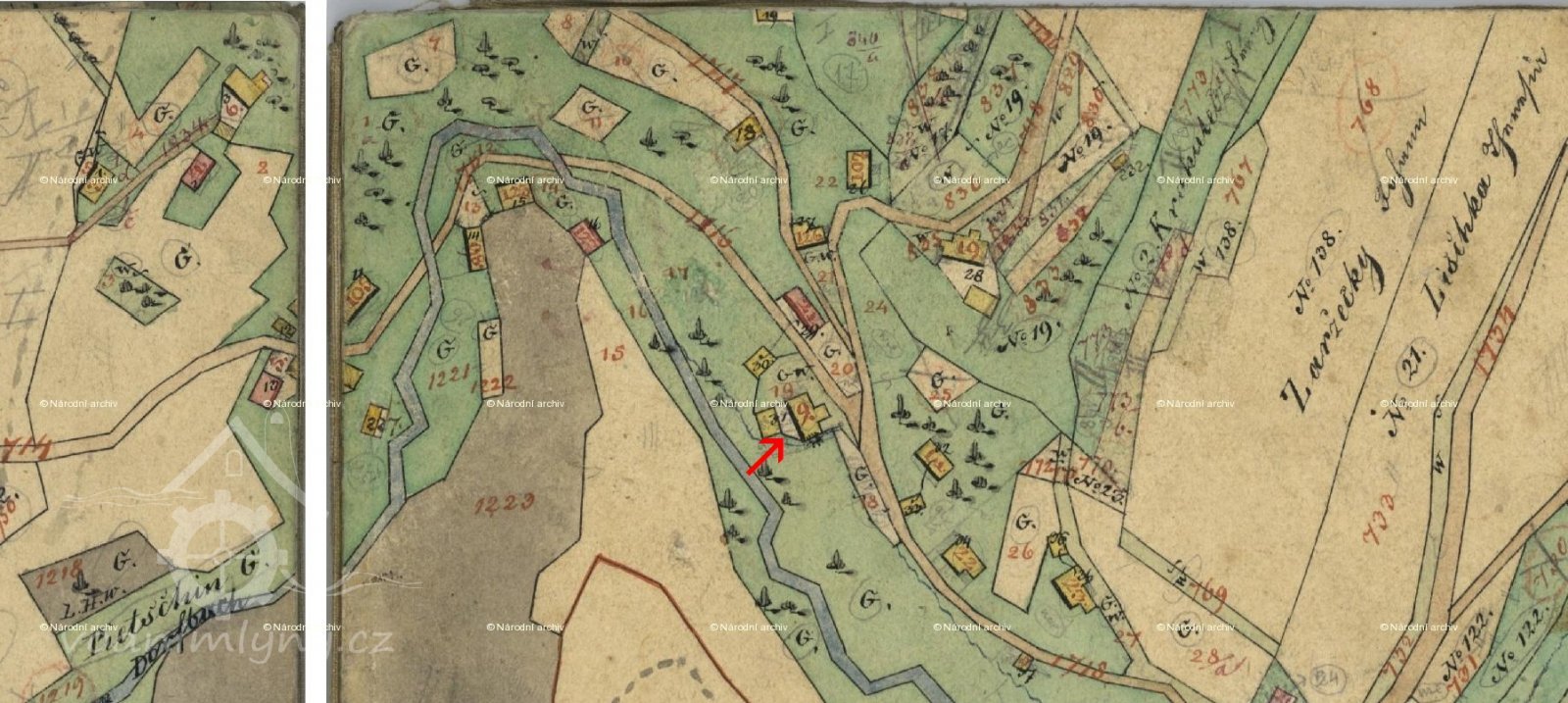 Josef Šafář znovu vystavěl mlýn a stavení a dal mu čp. 9, které zakoupil od Martina Divíška z čp. 10 (čímž byly do budoucna odtrženy čp. 21 a 9)