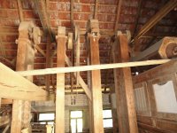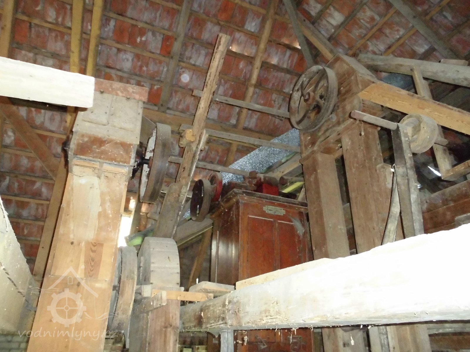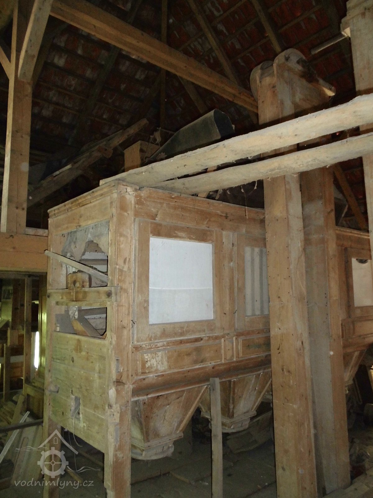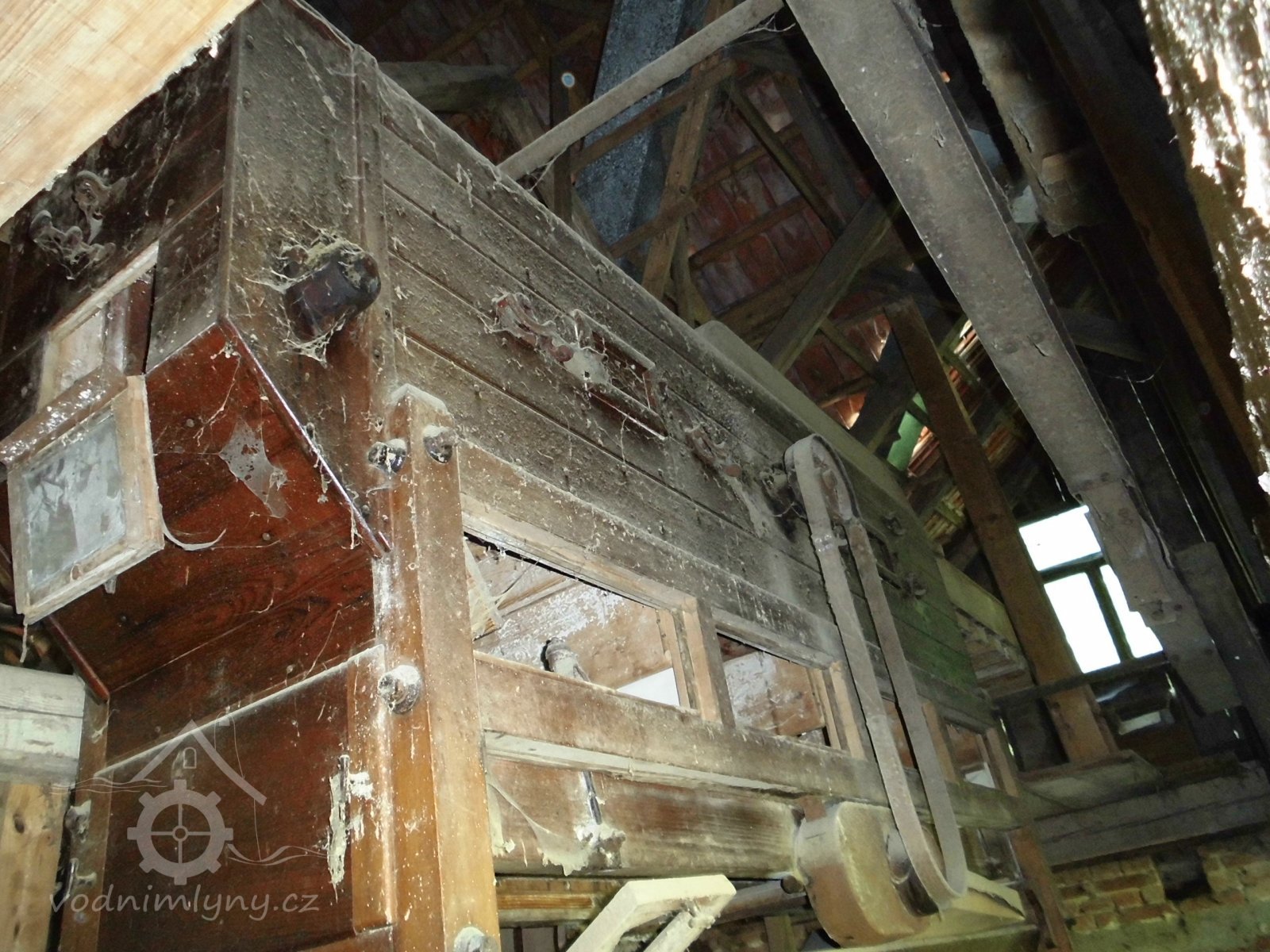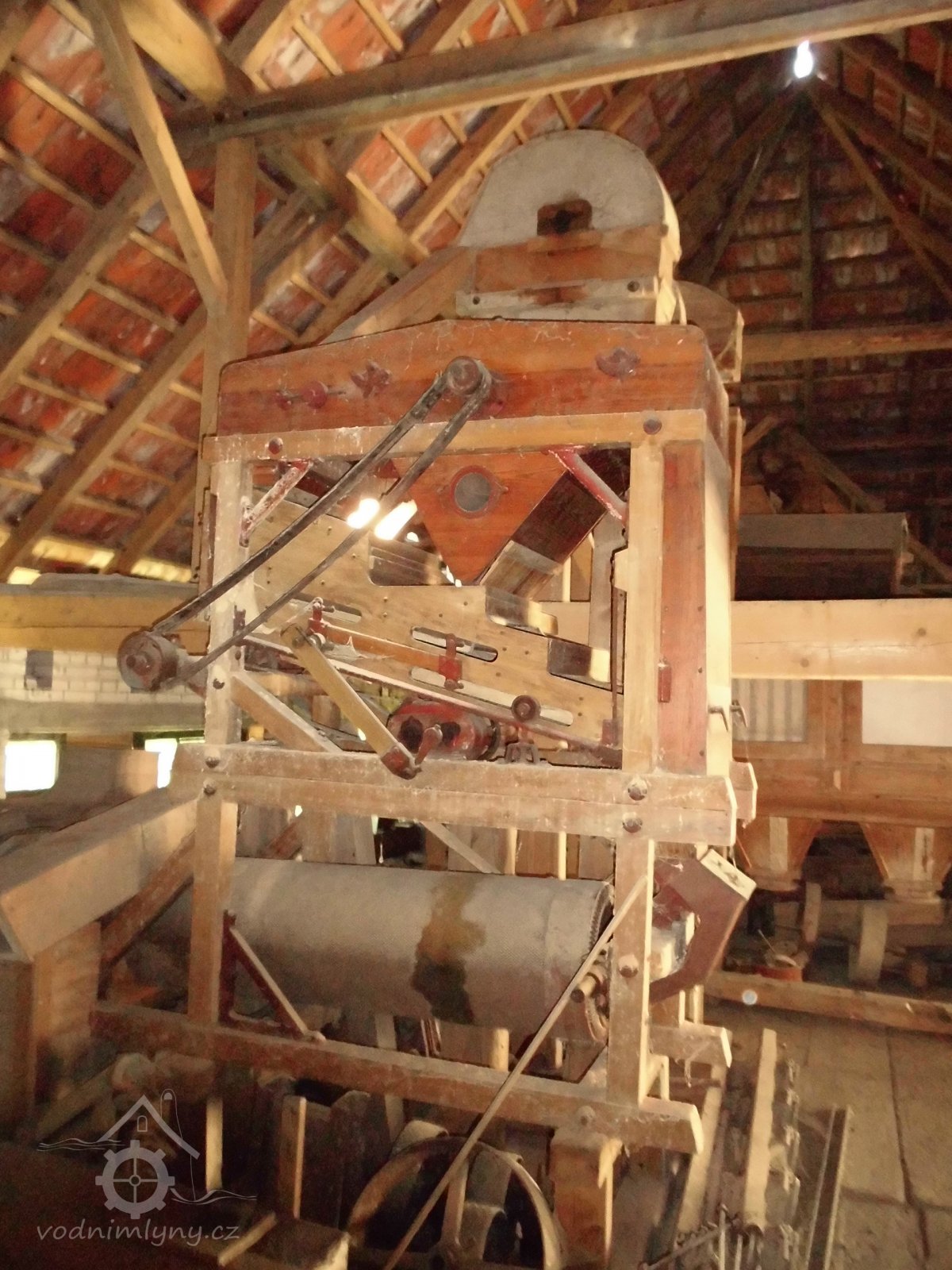 podstřeší, 2014, © Veselý, (Prvky na obrázku: transmise, řemenice, převody, odlučovací zařízení, výtahy a dopravníky)