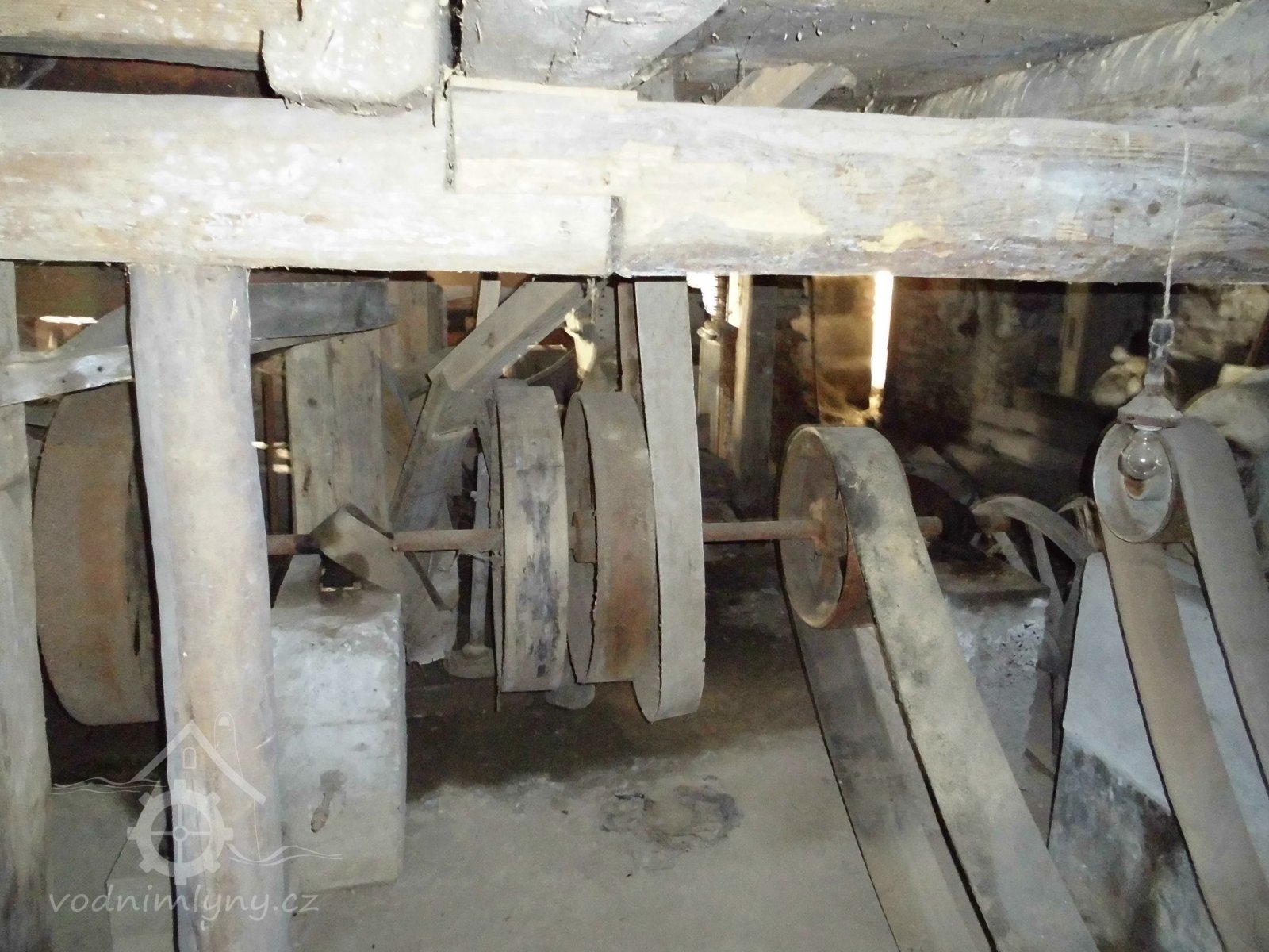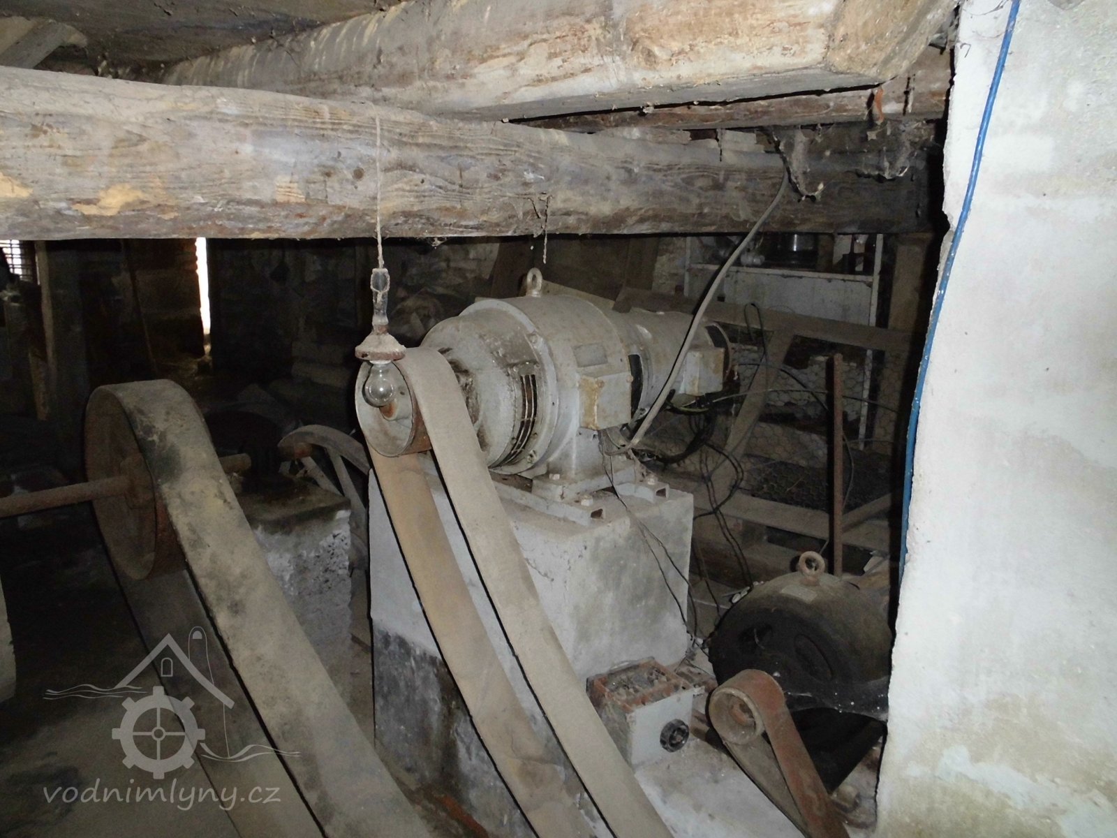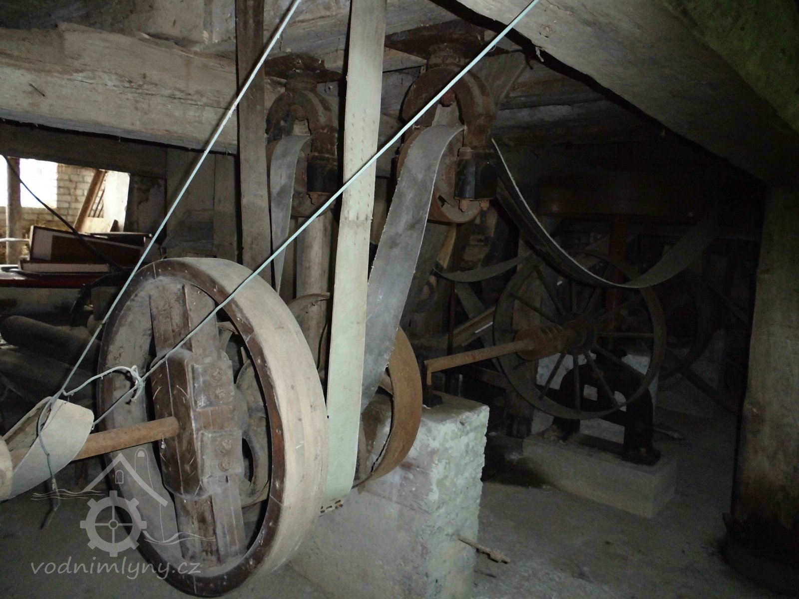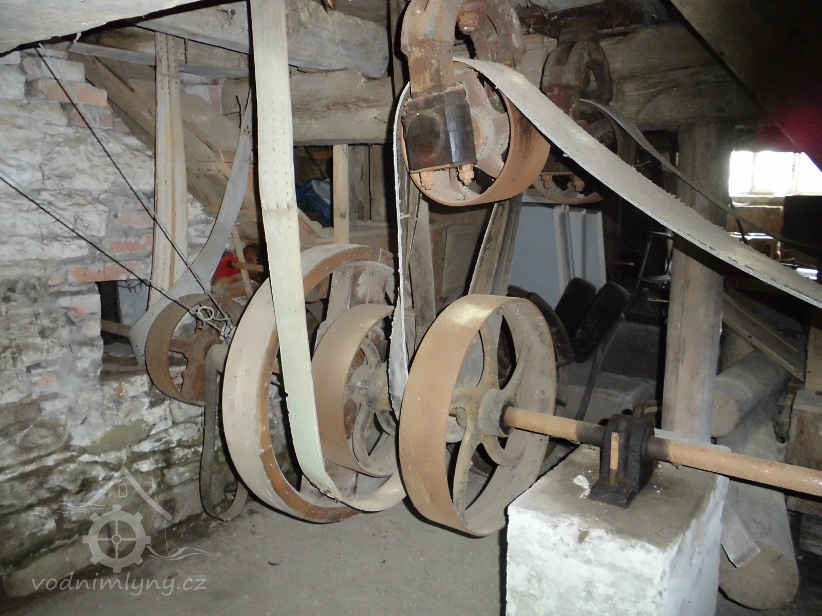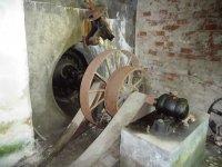 turbína, 2014, © Veselý, (Prvky na obrázku: Turbína, transmise, řemenice, převody)