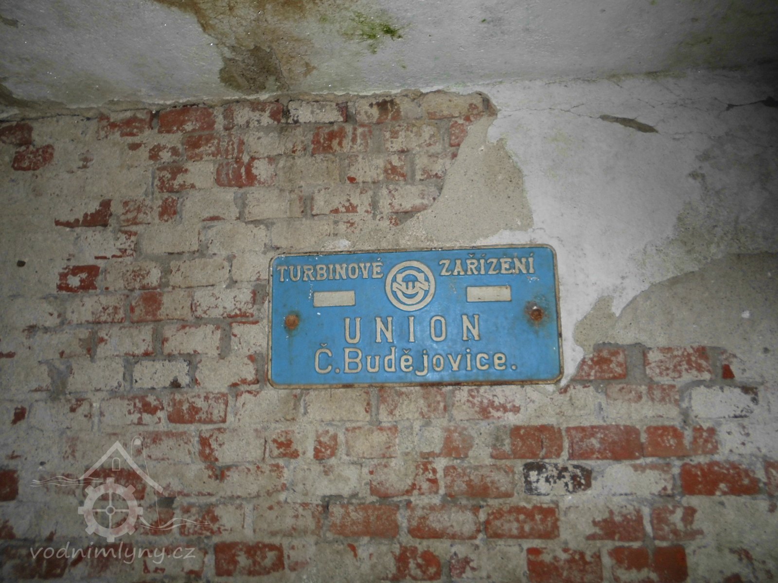 štítek turbíny, 2014, © Veselý, (Prvky na obrázku: značka výrobce na vodním motoru)