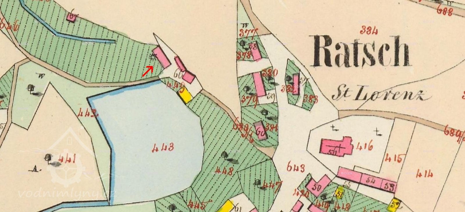 V roce 1930 byl majitelem mlýna Hanuš Adolf. Potok je uváděn jako bezejmenný.
