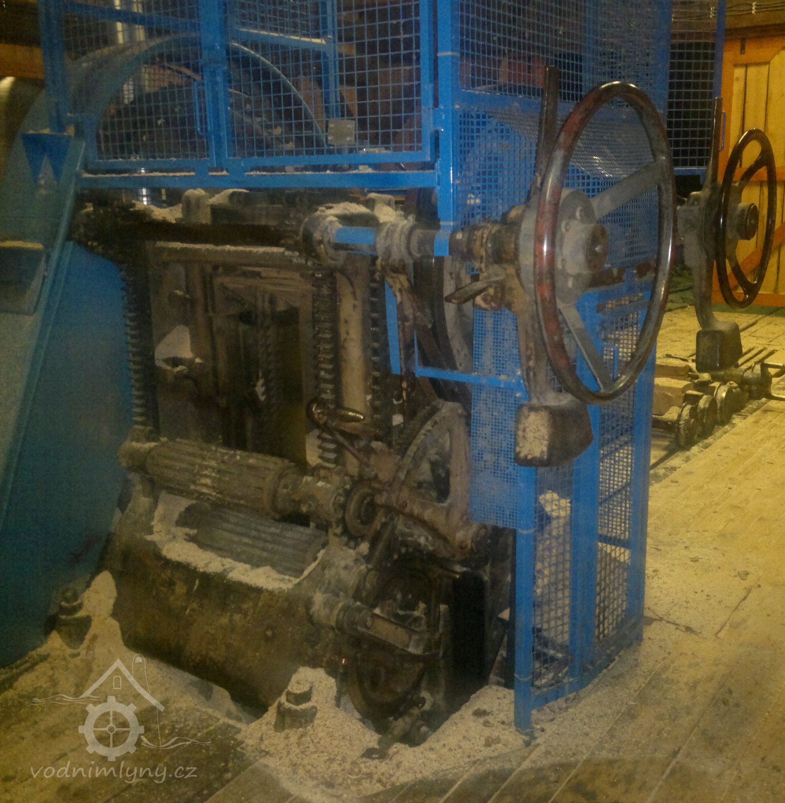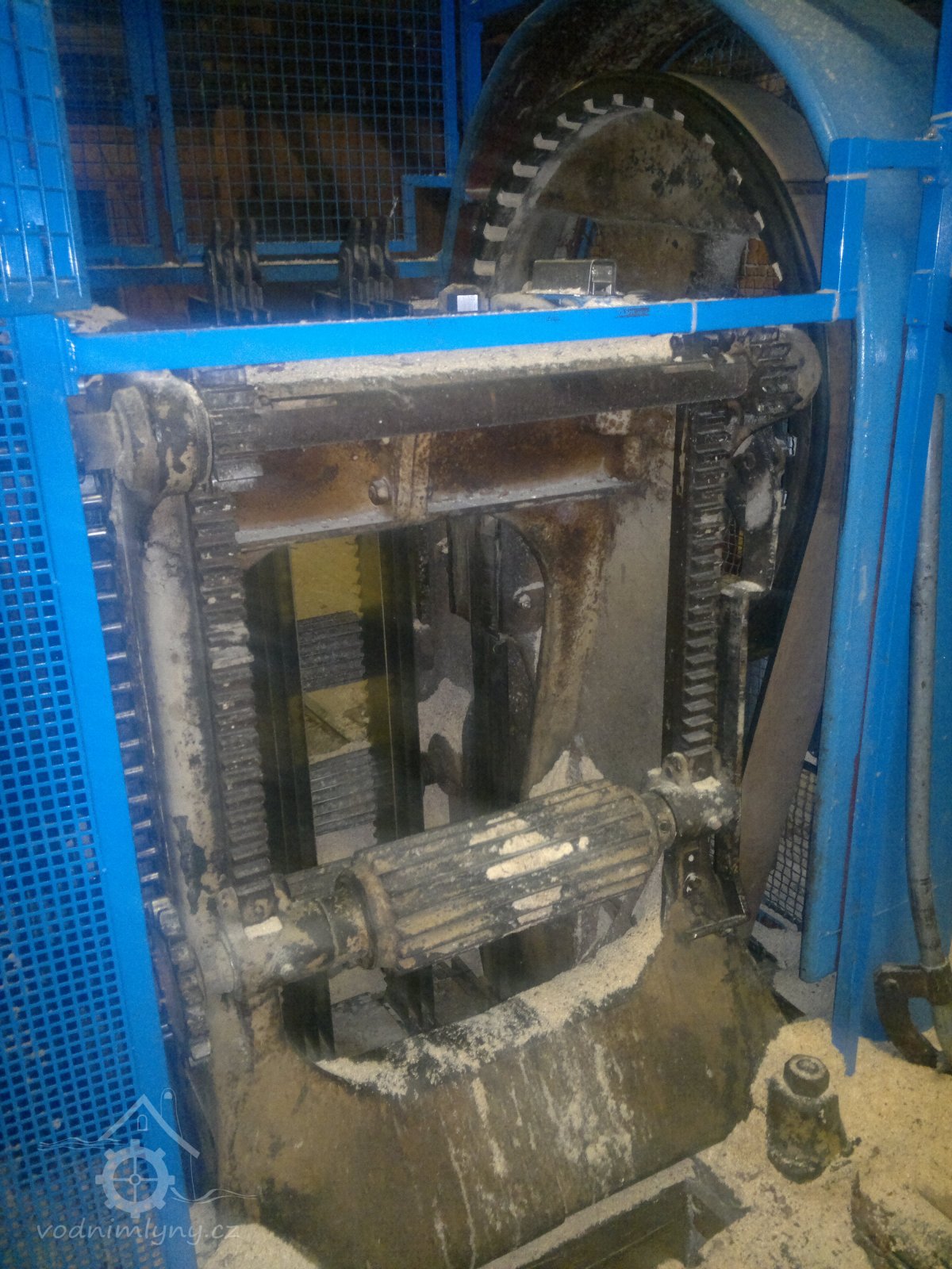 paleční převod pod pilou - čelní, 2013, © David Veverka, (Prvky na obrázku: transmise, řemenice, převody)