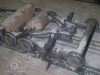 transmise předlohová pro pohon katru pily (od elektromotoru již dnes), 2013, © David Veverka, (Prvky na obrázku: transmise, řemenice, převody)