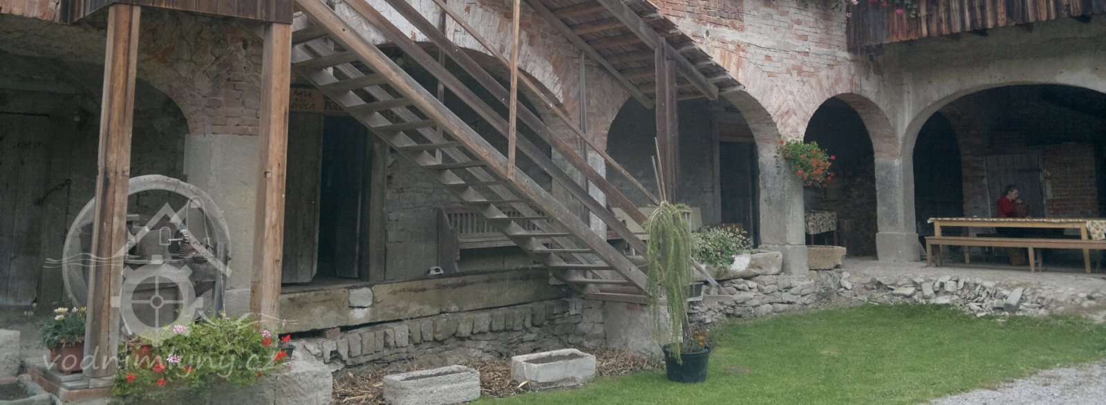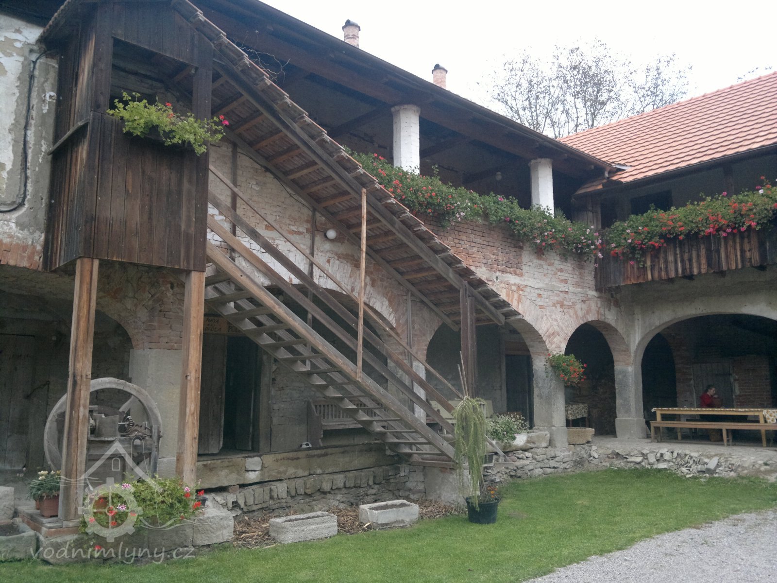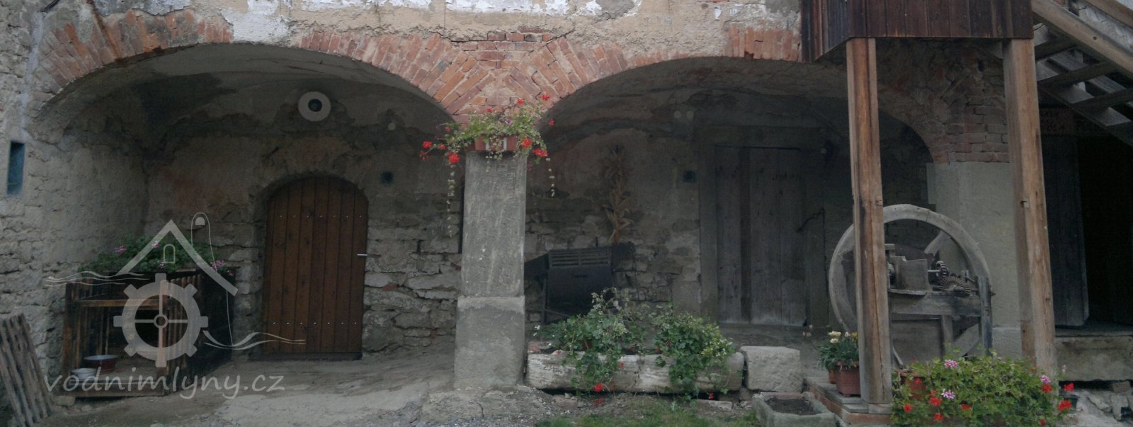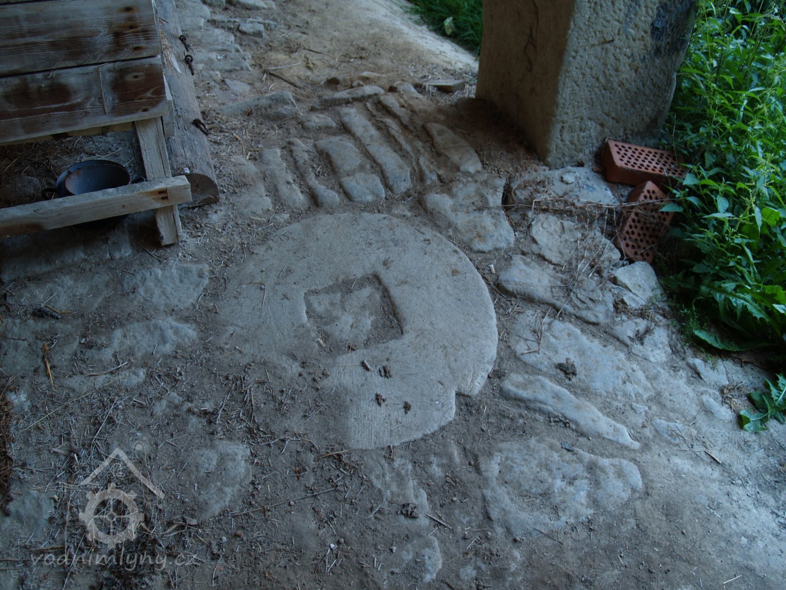 Mlýnský kámen v dlažbě podloubí dvora, 26.7.2008, © Jaromír Lenoch