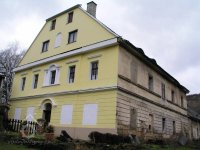 p. 12: patrové stavení zděné a omítané. Průčelí s pěti okenním osami, v šíři tří os mělký risalit, přízemí s pásovou bosáží. Mezipatrová římsa. Průběžná podokenní římsa, u risalitu s vejcovcem. Střední okno risalitu v edikule z dvou polosloupků a římsy proložené půlkruhem. V ploše polokruhu plastický paprsčitý motiv. Hlavní římsa s konzolami. Polovalbová střecha s dvěma vikýři, kryta taškami.