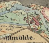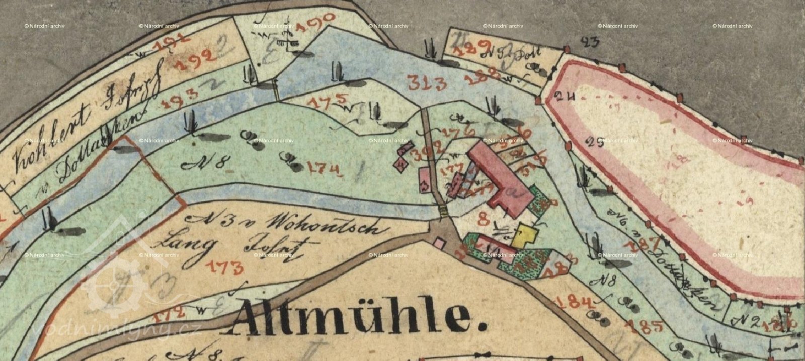 Základ souboru vodních mlýnů na řece Bílině, patřícího rodině Lachnerů, byl položen v první čtvrtině 18. století. Poprvé bylo místo připomínáno roku 1669, kdy Kateřina Alžběta Pachonhay zakoupila panství Křemýž s vesnicemi Ohníč, Dolánky a Němečky. V té době byly součástí panství čtyři mlýny. Mlýn na tomto místě je zachycen na mapě 1. (josefského) vojenského mapování a rovněž na mapě stabilního katastru.