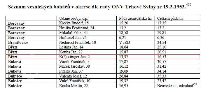 Jan Murtinger v Seznamu vesnických boháčů z r. 1953. (viz. fotogalerie Ostatní)