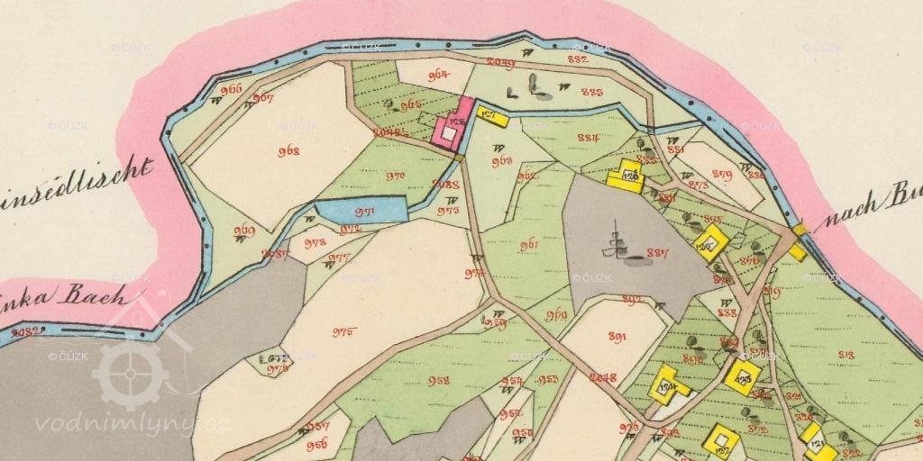 Mlýn dříve patřil k obci Kamenné Sedliště a měl čp. 1.