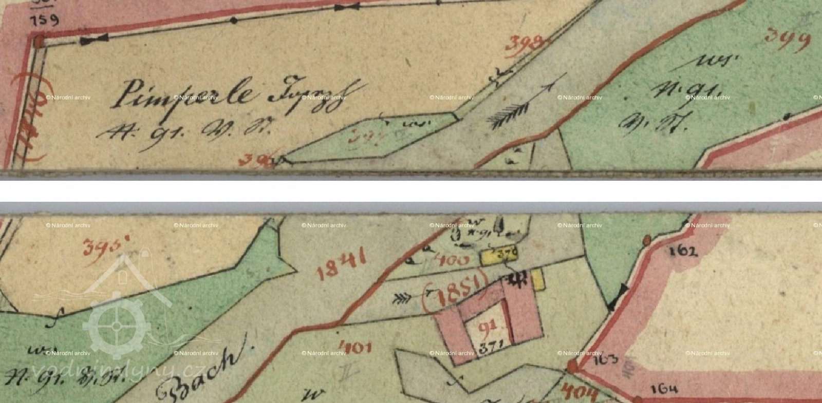 1831 Rozálie Žahourová (49 let) s dětmi Josefou (18 let) a Josefem (8 let), mlýn ostarává tovaryš František Kinsteter