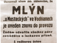 29.9.1865 Josef Mostecký zemřel, mlýn převzal syn Jan Mostecký (1843-1912), 1867 se oženil s Johanou, dc. Josefa Žahoura z Kulhánkova mlýna