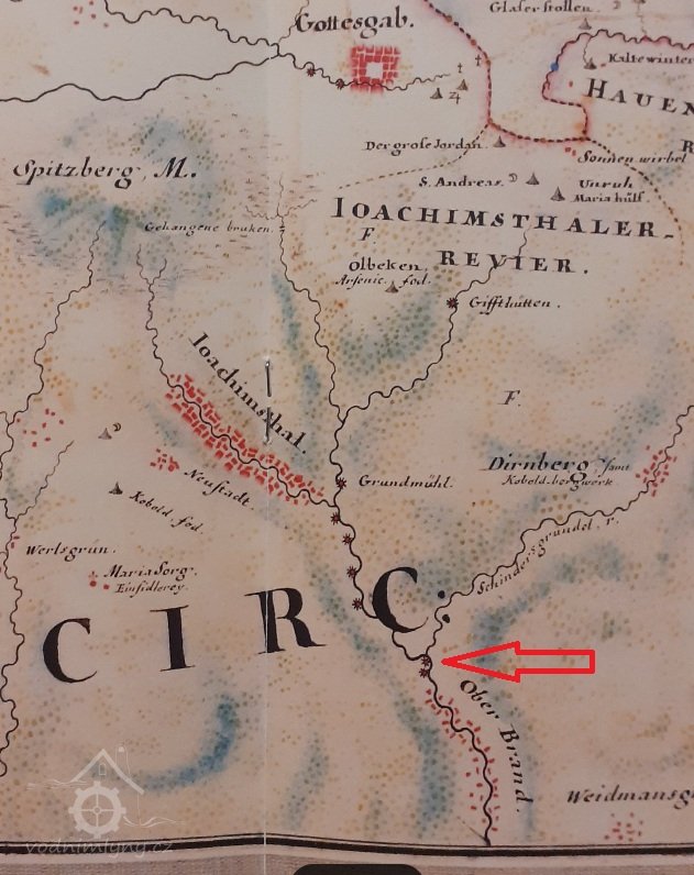 Údolí pod Jáchymovem s potokem Veseřice, dnes Jáchymovský potok, se přímo nabízelo pro využití vodní síly. Plně pak k tomu došlo po objevu stříbra roku 1516 a po založení města Joachimsthal, které již na počátku mělo 1000 obyvatel a v r. 1534 dokonce až 18 000, tedy neskutečnou hustotu obyvatel na tak úzké údolí. Vodní díla vyrůstala těsně za sebou, aby se využil spád a nebyla daleko od města, vznikla taková průmyslová zóna z mlýnů na obilí, hamrů, stup, huti a dvou papíren, kde se zužitkovaly staré hadry dělníků z vlny a lnu.
