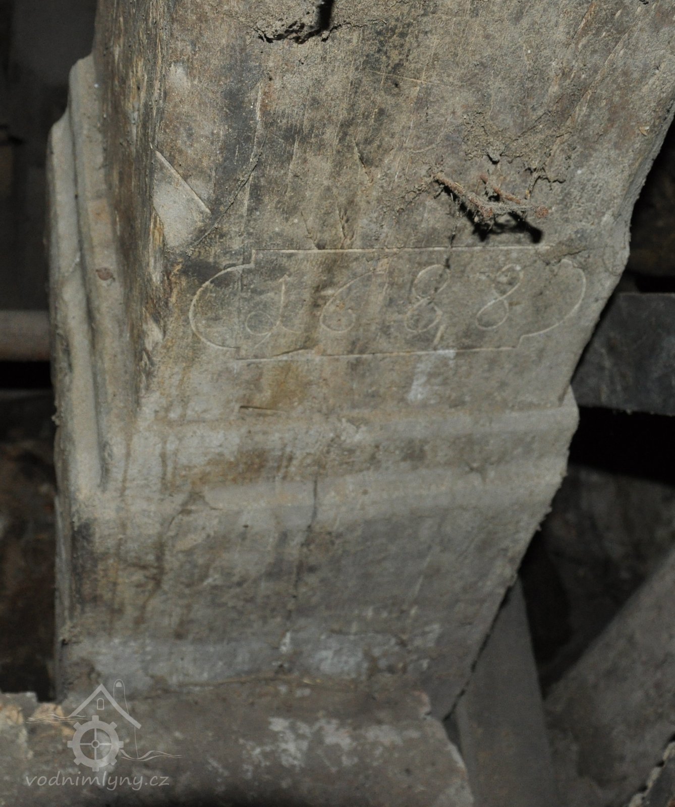 sloup mlýnské hranice s datací 1688 - detail, 2015, © David Veverka, (Prvky na obrázku: mlýnská hranice)