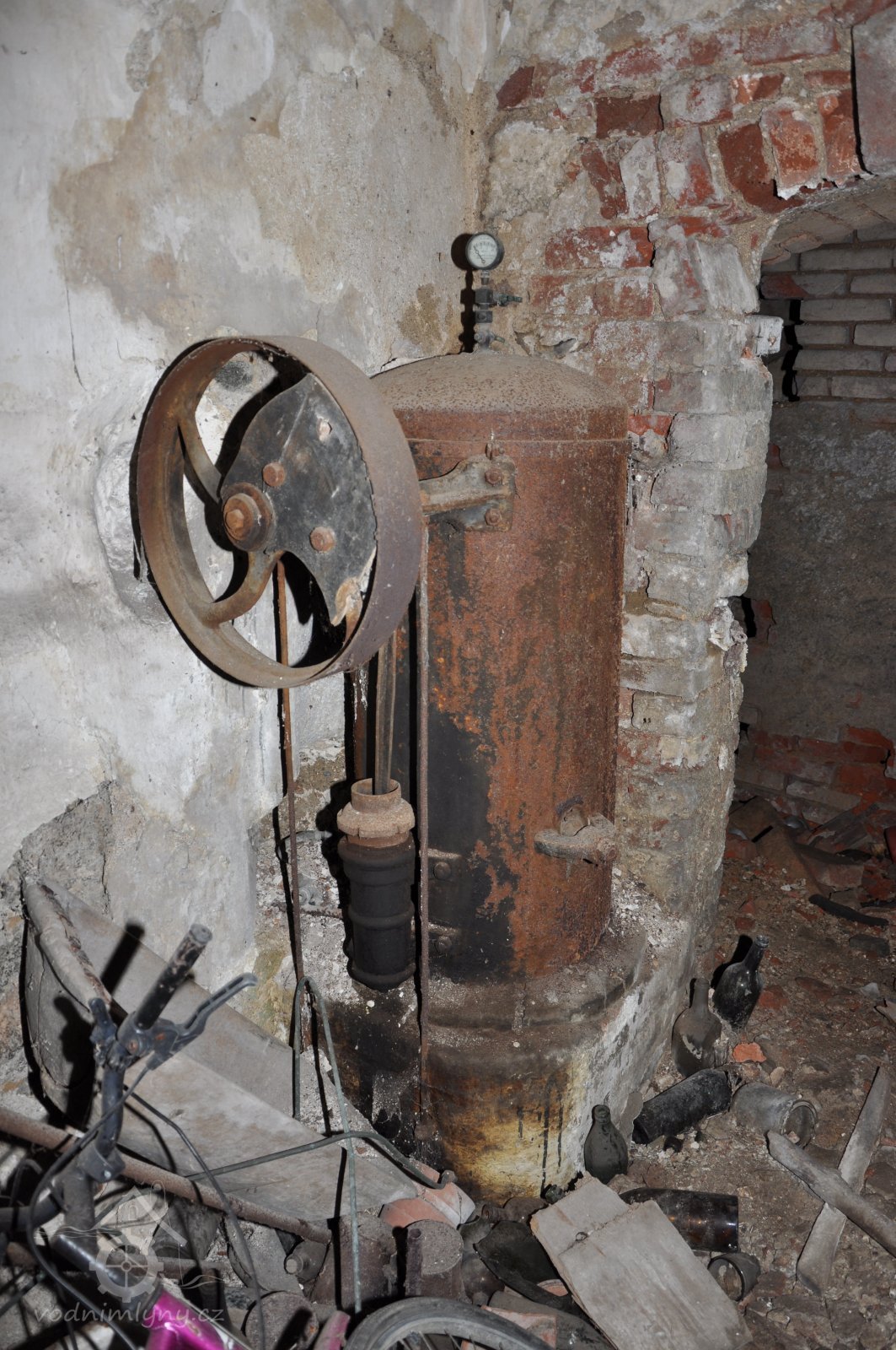 kompresor hnaný od transmise mlýna jako součást zařízení k čepování piva, 2015, © David Veverka, (Prvky na obrázku: jiné zařízení)