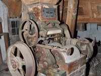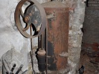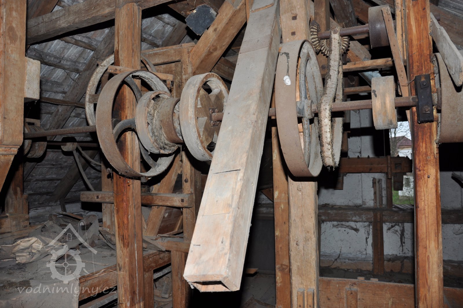 pohon 2. kamenného mlecího složení, 2015, © David Veverka, (Prvky na obrázku: transmise, řemenice, převody)
