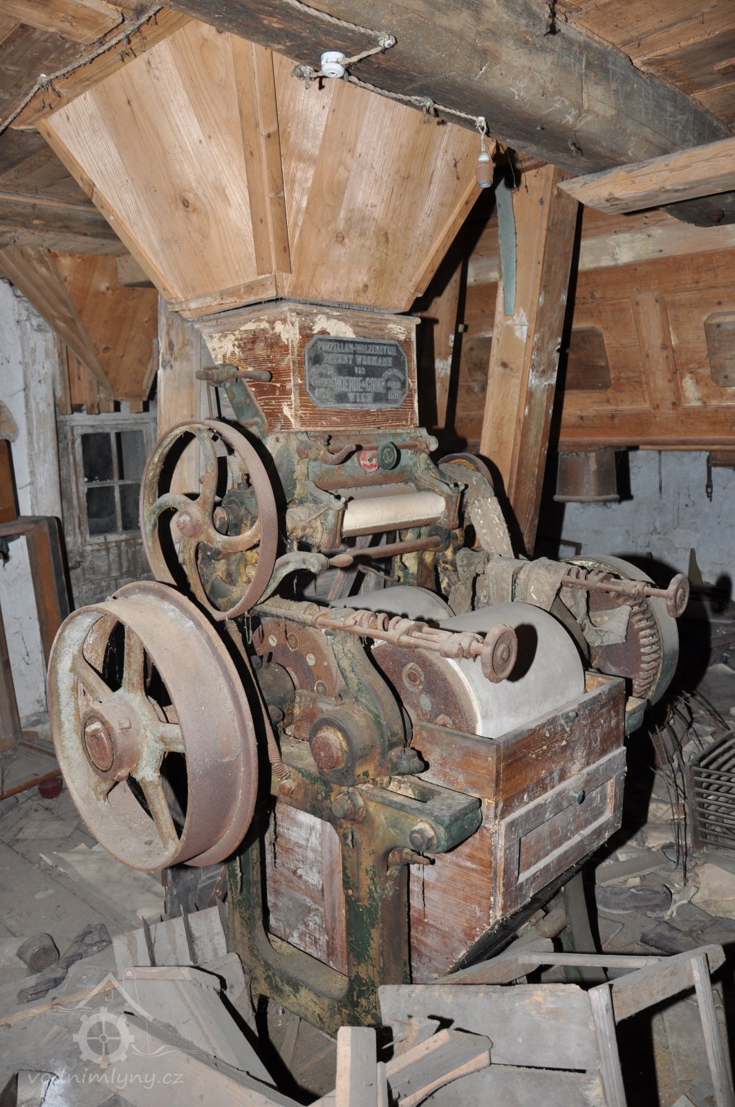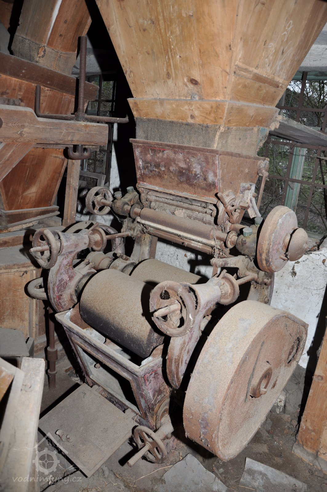 válcová mlecí stolice J. Kohout - Praha Smíchov, vyrobená po roce 1888, 2015, © David Veverka, (Prvky na obrázku: válcová stolice)