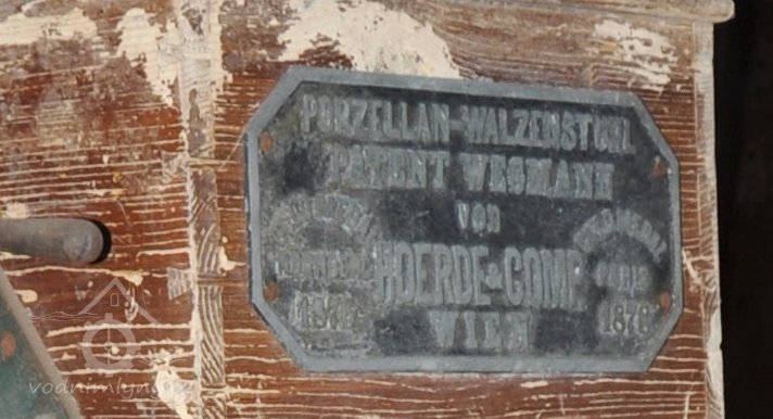 - válcová stolice s porcelánovými válci v dřevěné skříni systému Wegmann od výrobce Hoerde a Comp. – Wien, vyrobená kolem roku 1890, 2015, © David Veverka, (Prvky na obrázku: válcová stolice)