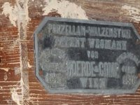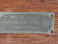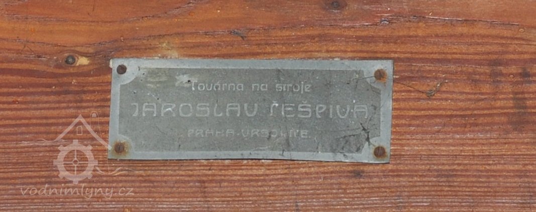 štítek na válcové stolici, 2015, © David Veverka, (Prvky na obrázku: značka výrobce na technologickém vybavení)