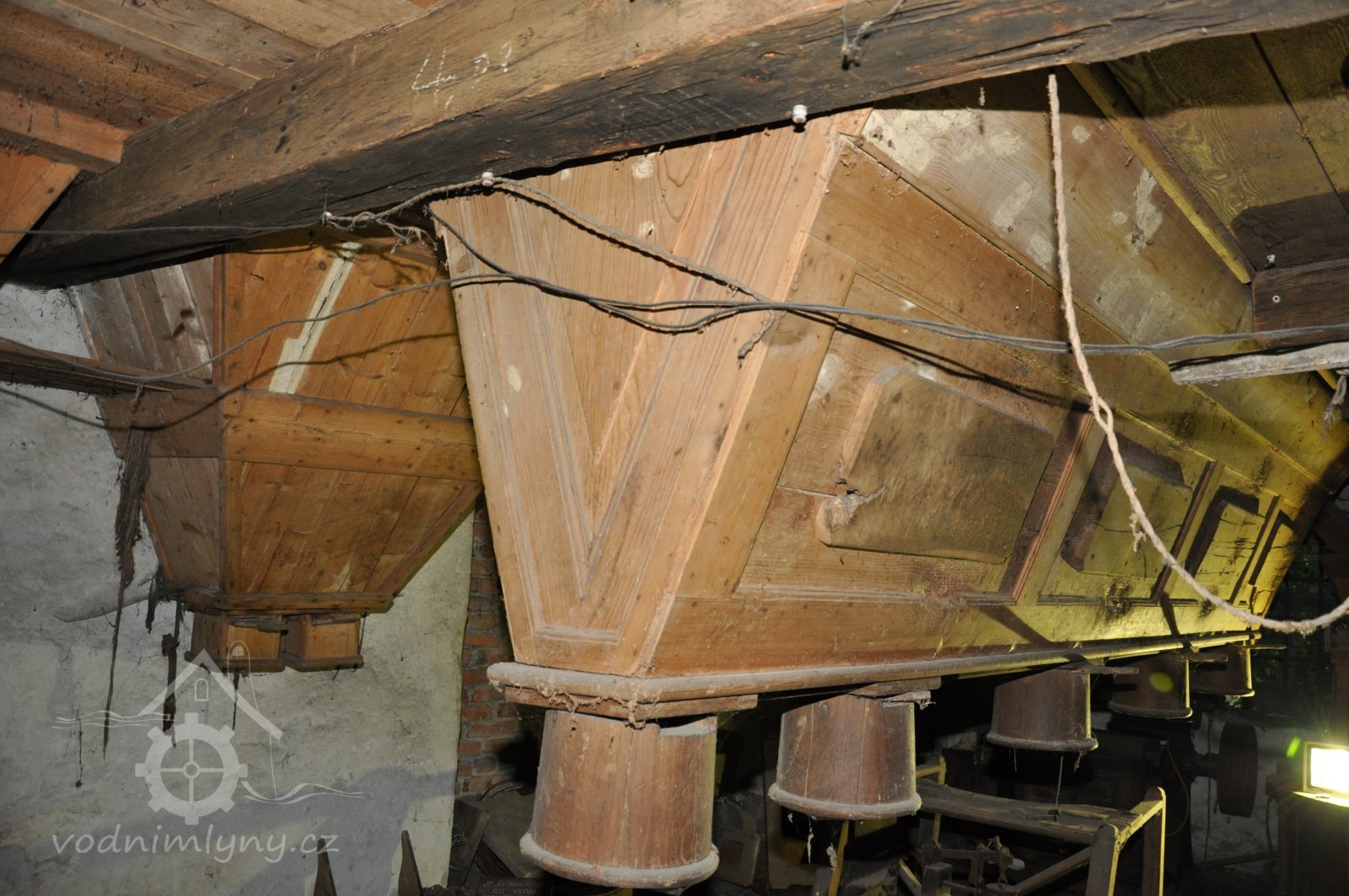 zdobená pytlovací lávka moučného hranolového vysévače a zásobníky, 2015, © David Veverka, (Prvky na obrázku: pytlovací lávka, zásobník, násypka)