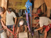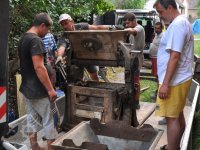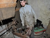 restaurátor strojů David Veverka provádí demontáže strojního zařízení pro převoz do muzejní expozice, 2015, © Anton, (Prvky na obrázku: válcová stolice)