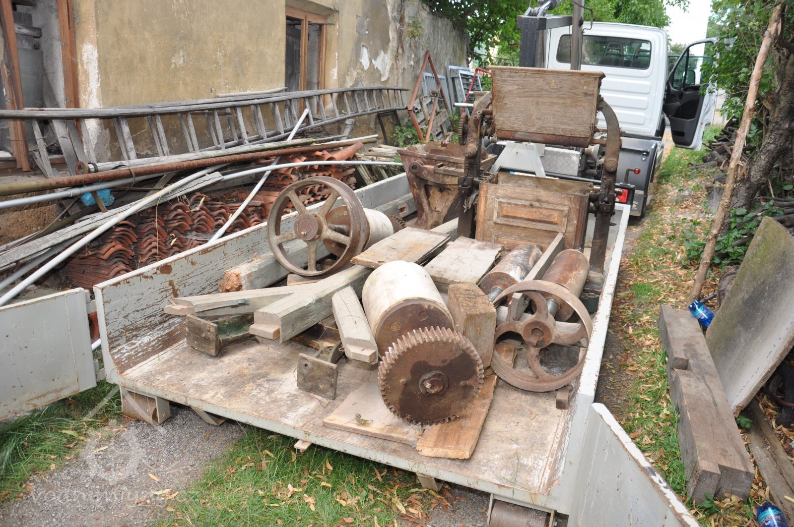 roztříděné strojní součásti připravené pro převoz do muzejní expozice, 2015, © David Veverka