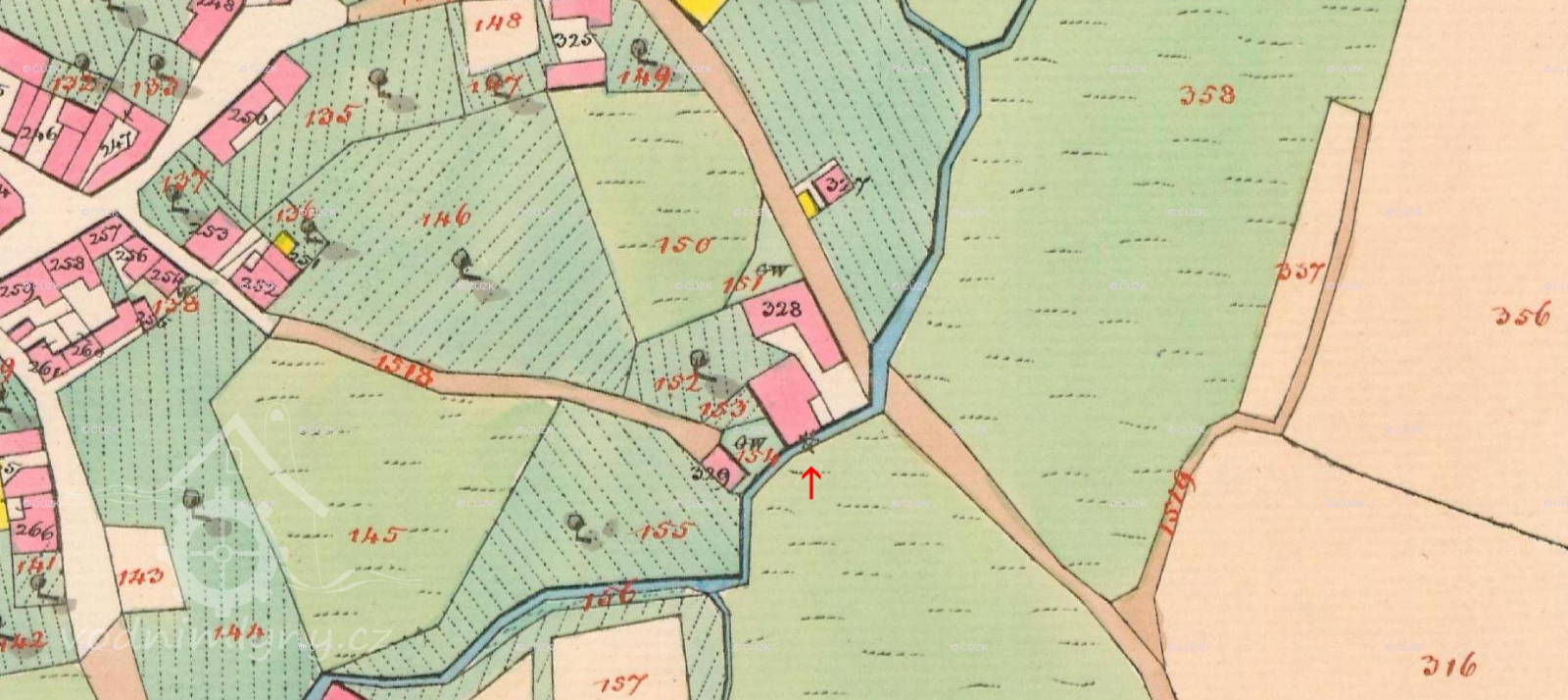 Mlýn je zobrazen na mapě stabilního katastru :Čechy-6076-1 -Prachatice-mapový list č.004.Jednalo se o následující stavby:
