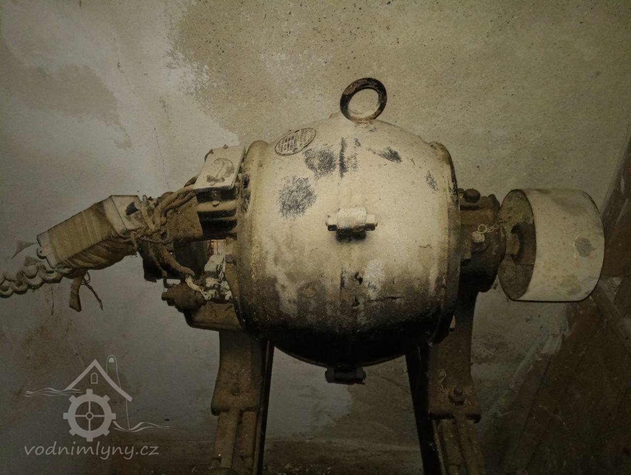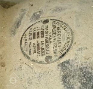 štítek výrobce na dynamu, 2020, © David Veverka, (Prvky na obrázku: Generátor, dynamo, značka výrobce na technologickém vybavení, výroba elektrické energie)