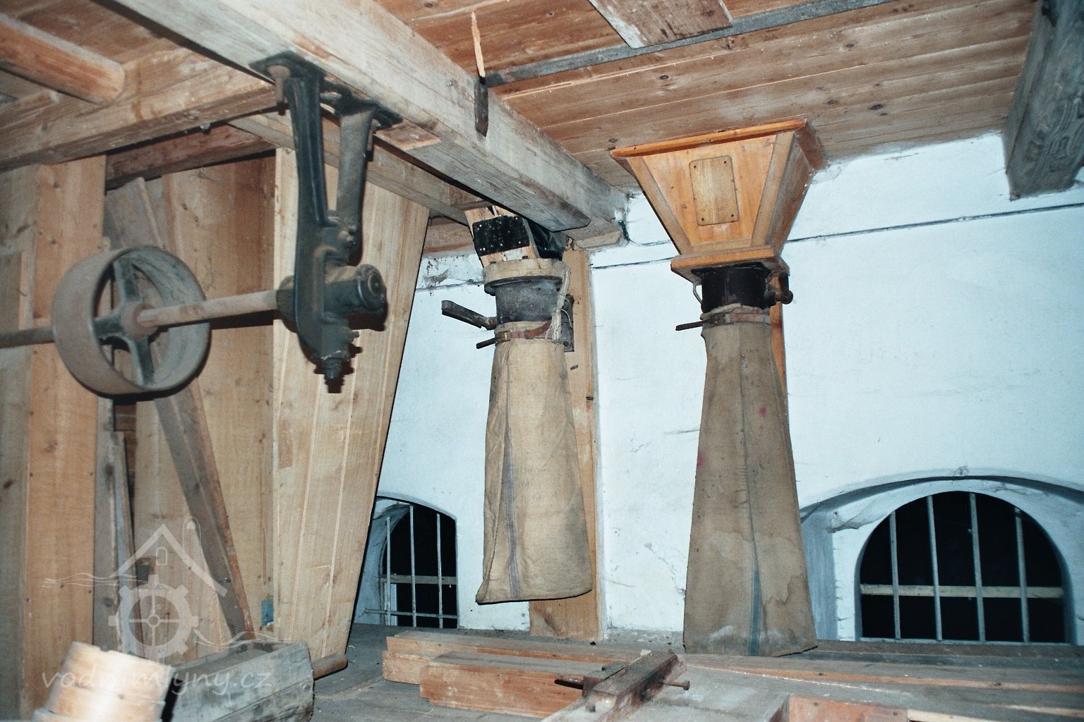 hranolový předvysévač se šnekovým dopravníkem a pod ním je moučný hranolový vysévač, 2008, © David Veverka, (Prvky na obrázku: vysévač hranolový)