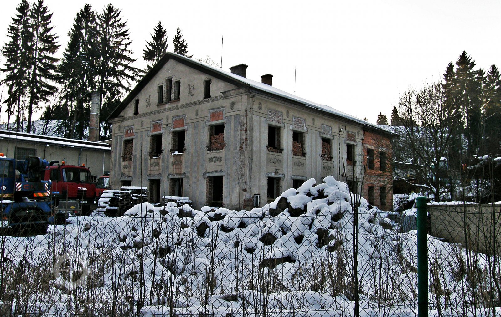 Původní roubená zadní část po roce 1988 zbořena a nahrazena cihlovou.