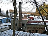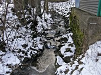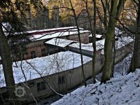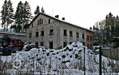 Bývalý mlýn na soutoku potoků. Dnes opuštěná chátrající budova v areálu někdejších továrních objektů využívaných dopravně-stavební firmou.
