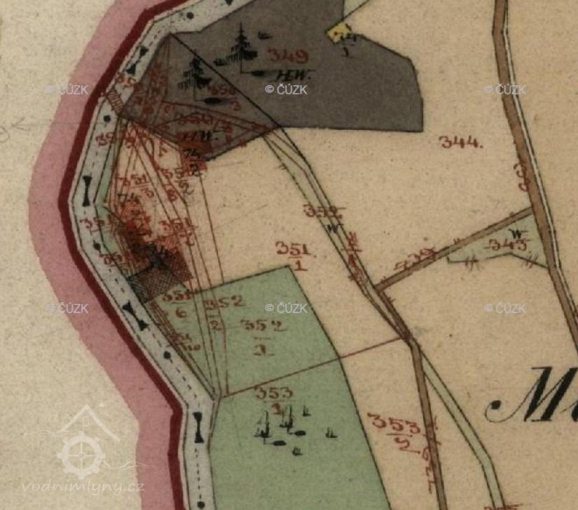 Mlýn vznikl až po roce 1852 - je vyobrazen až na III. vojenském mapování. (RŠ)