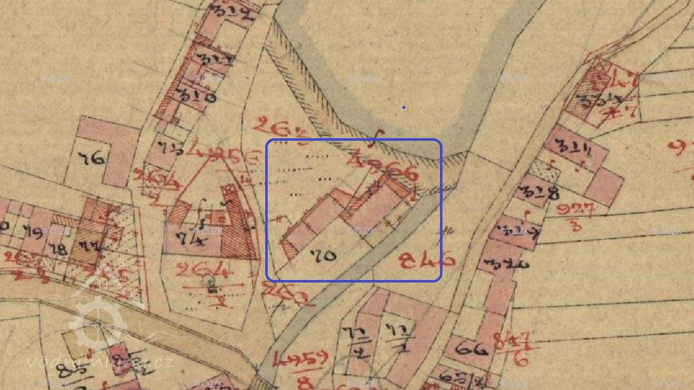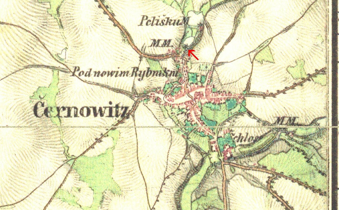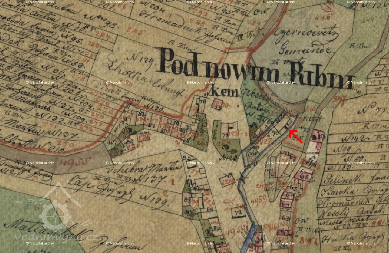 ...Melivo vozí se do šesti mlýnů ležících na dvou potocích. Z těch větší přitéká ode Lhotky a naplňuje nejprve rybník u mlýna na Vackově. Vackov je skupení jedenácti chalup kolem mlýna čtvrt hodiny cesty k východu od Černovic. Mlýn ten patříval před časy k Svatavě, ale r. 1596 k žádosti mlynáře Václava připojen jest od Petra Voka z Rozemberka k Černovicům. Blíže městu pod Vackovem protéká potok rybník u mlýna „Ťápalova“, kdež i pila se nalézá. Na SV. pod Moudrovem vzniká potok druhý, naplňuje rybníky „Hořejší“ a „Dolejší“ při mlýnech týchž jmen, ležících u samého městečka, odtud teče Předměstím a Pršínem, kdež je most kamenný se sochami sv. Jana Nepomuckého a sv. V8clava a při západní straně města běží do obory, kdež se spojuje s potokem prve dotčeným. Část vody shražená žene pod oborou mlýn „Šelichův“ a ještě dpleji naplňuje rybník hluboký s koupadlem u mlýna Louckých. V létech suchých potoky tak málo vody rybníkům dodávají, že jen po přestávkách, vždy až se rybník naplní, mlýti se může... (pep)