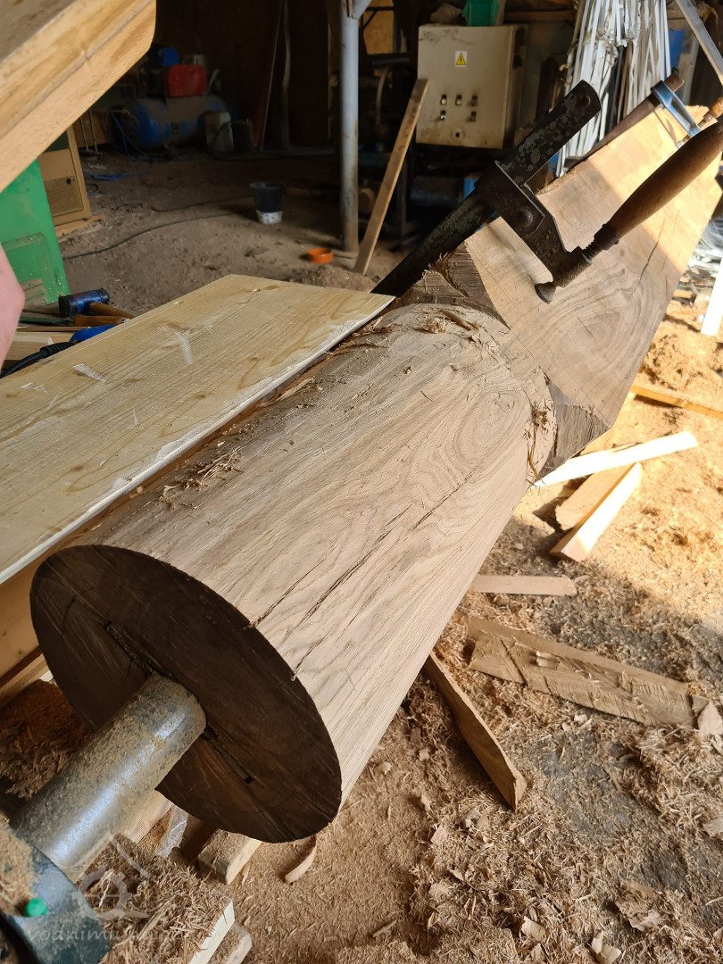 Výroba hřídele k novému vodnímu kolu, 03 2022, © Jaroslav Nedbal, (Prvky na obrázku: Vodní kolo)