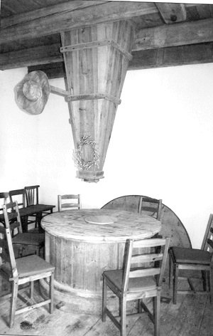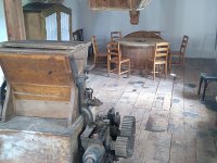 kamenné složení s lubem a násypkou (dnes využívané jako stůl)