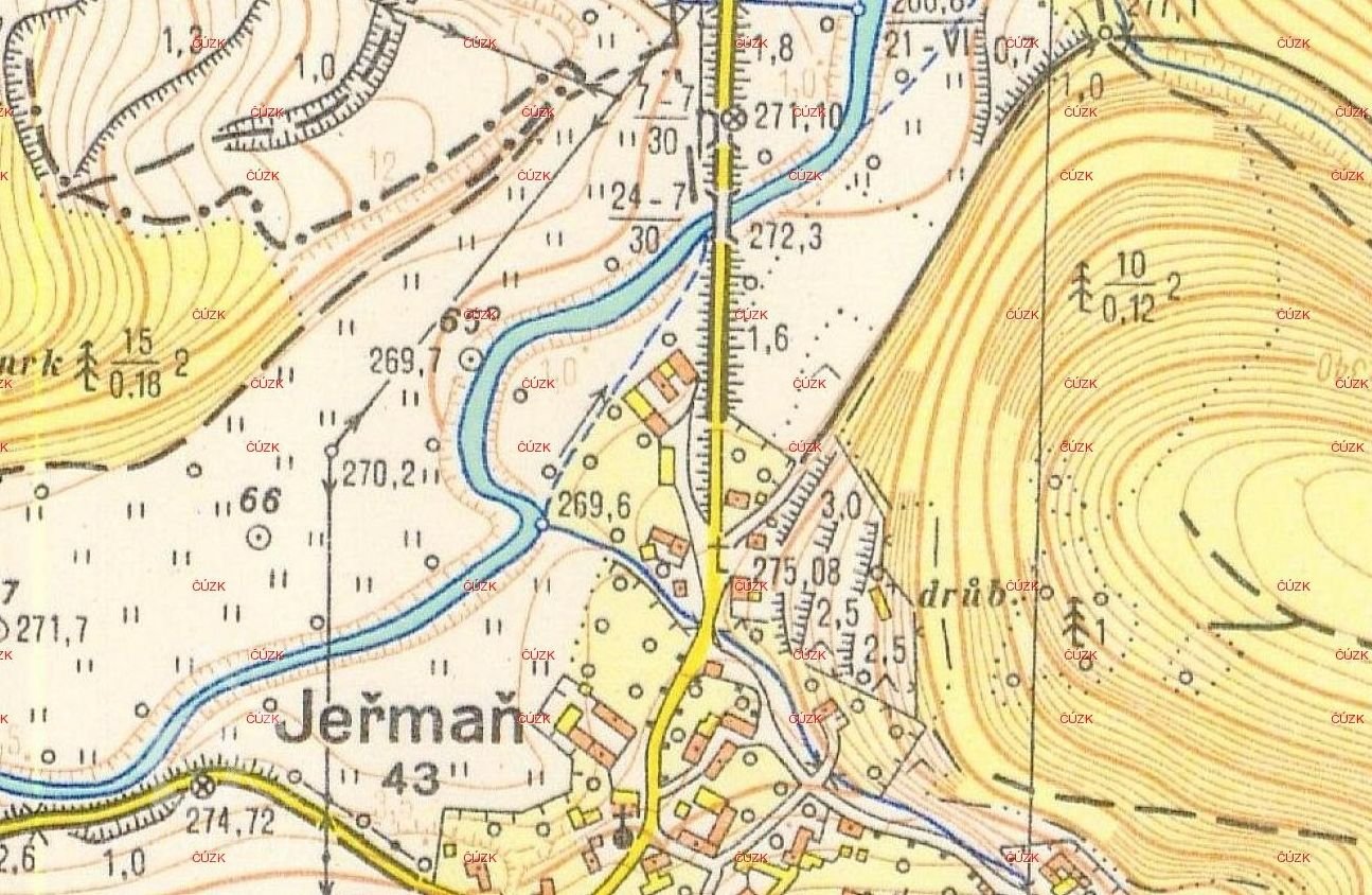 • Vlastivěda moravská – Litovelský okres, autor Viktor Pinkava, 1903 - str. 208 - Jeřmaň: „… na Třebovce stojí velký mlýn s pilou.“