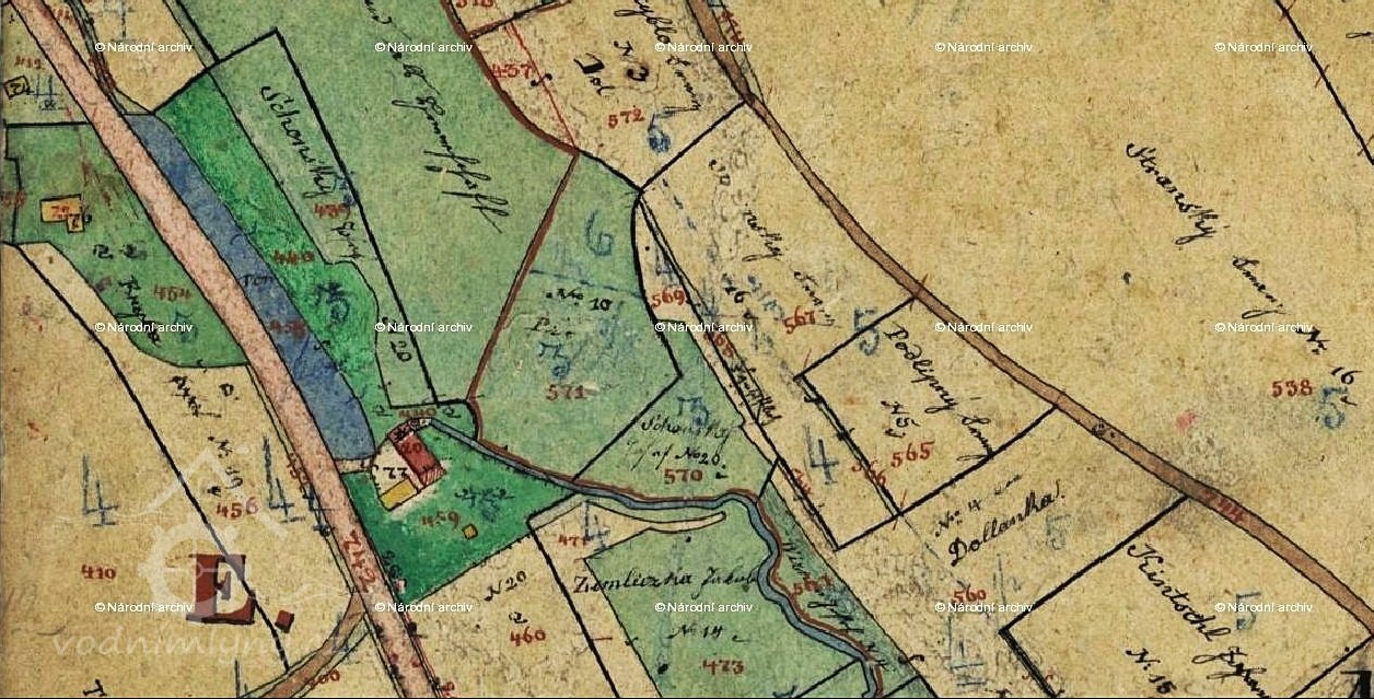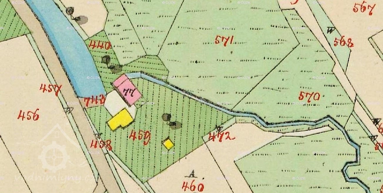Roku 1930 zde měl Jan Bachtík jedno vodní kolo na svrchní vodu. (PŠ)