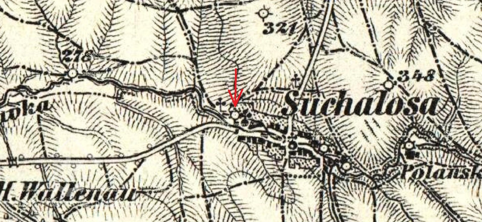1881 - František Velecký, mlynář v Suché Lozi, syn Tomáše Veleckého, mlynáře v Suché Lozi, a Barbory, vdovy po Františku Mahdalovi, mlynáři v Suché Lozi (MZA, Bánov 11247, sn. 97) (mGh