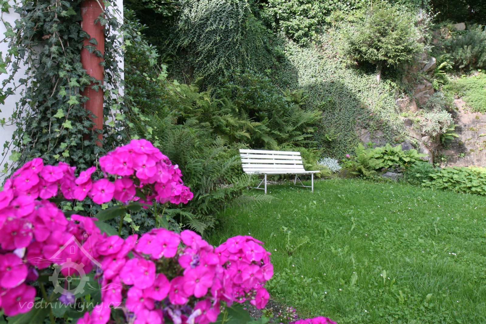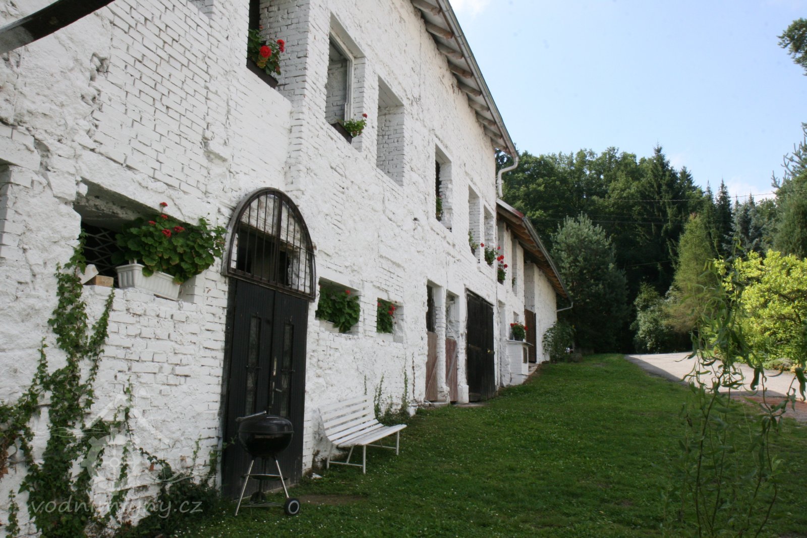 a z druhé strany obklopena velkou zahradou s travnatou plochou