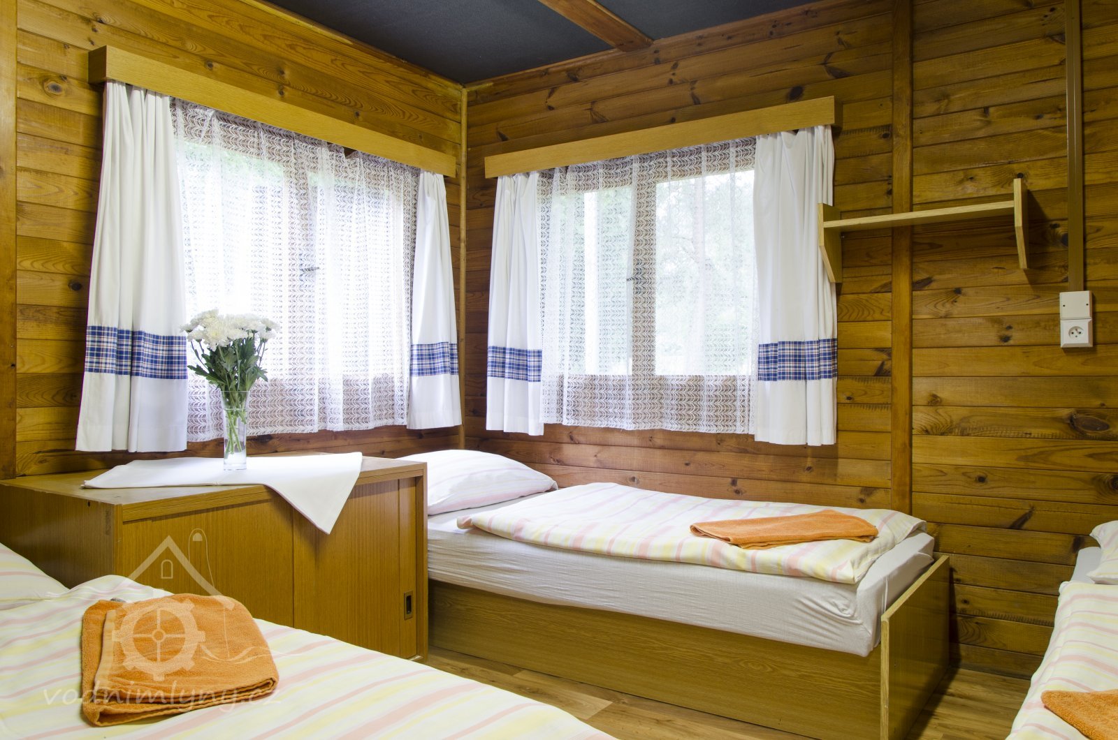K dispozici je 55 lůžek ve dvou, třech a čtyřlůžkových pokojích.